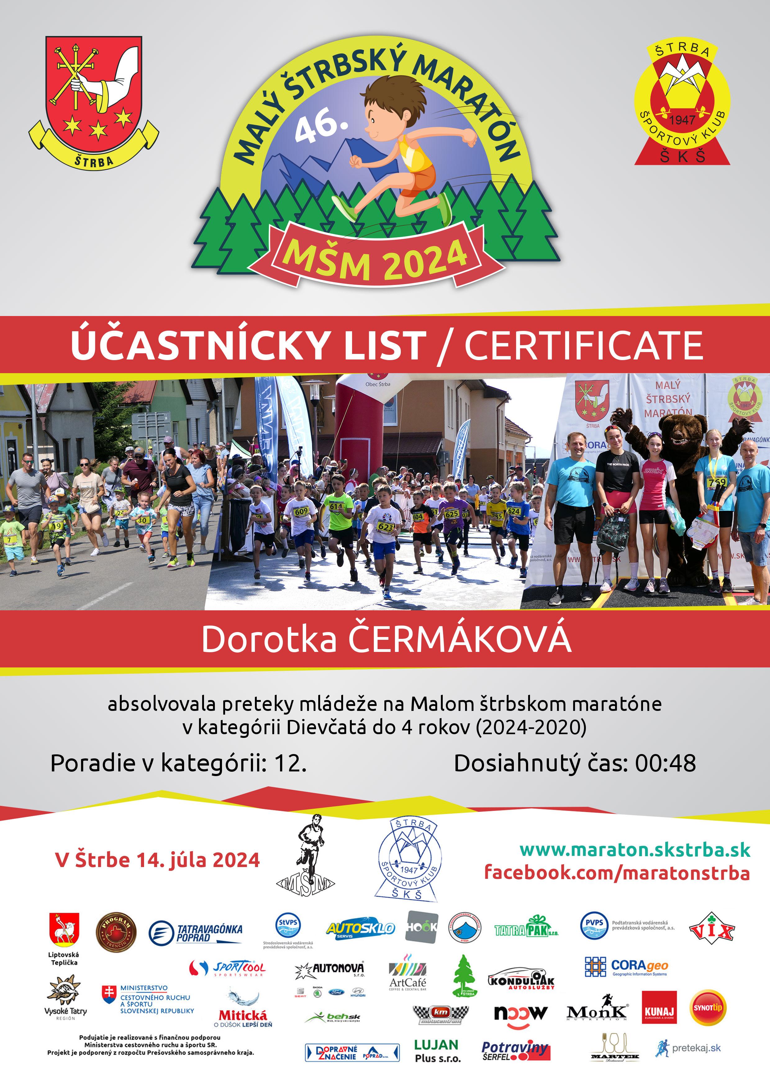 Účastnícky list pretekára ČERMÁKOVÁ Dorotka