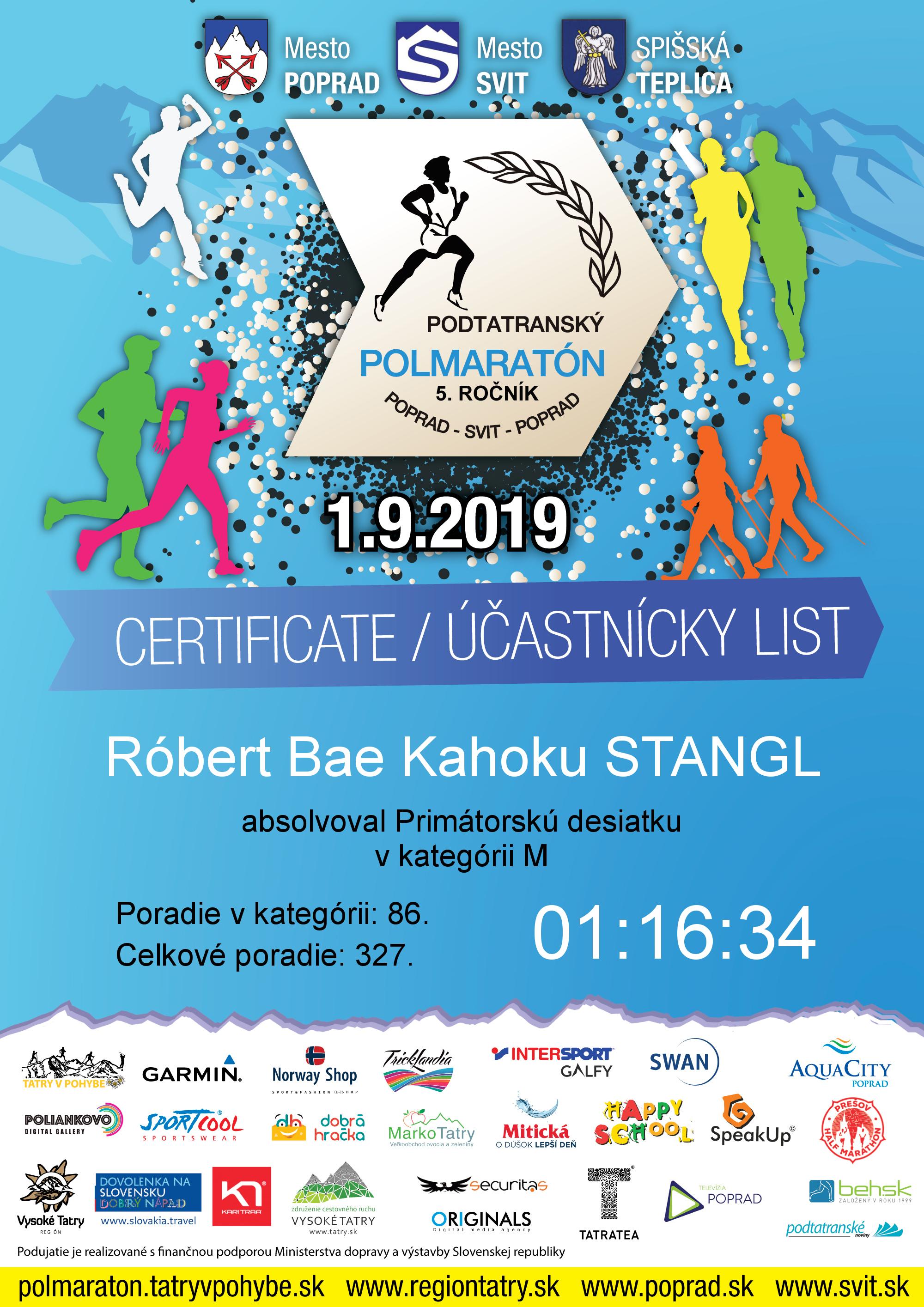 Účastnícky list pretekára STANGL Róbert Bae Kahoku
