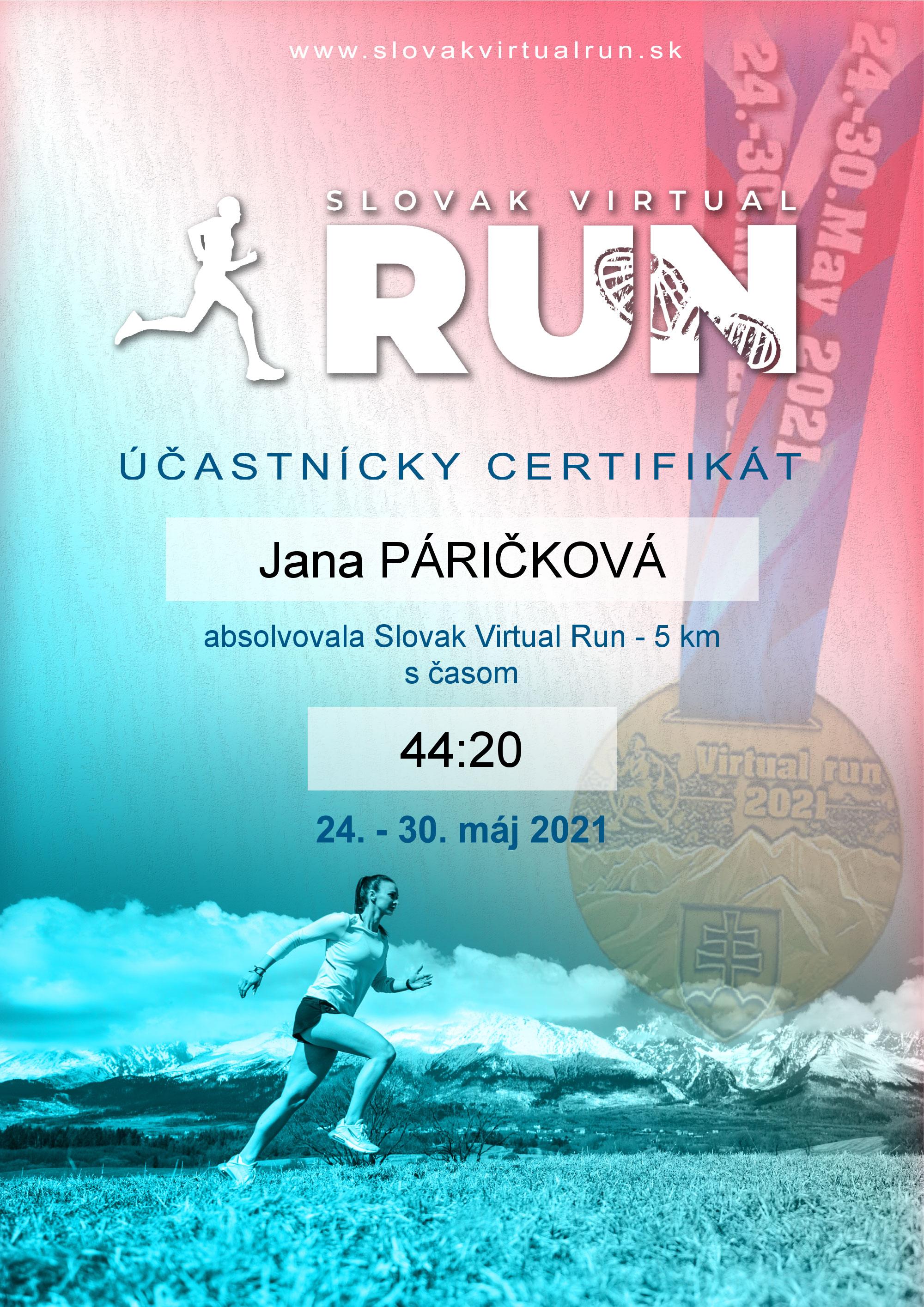 Účastnícky list pretekára PÁRIČKOVÁ Jana