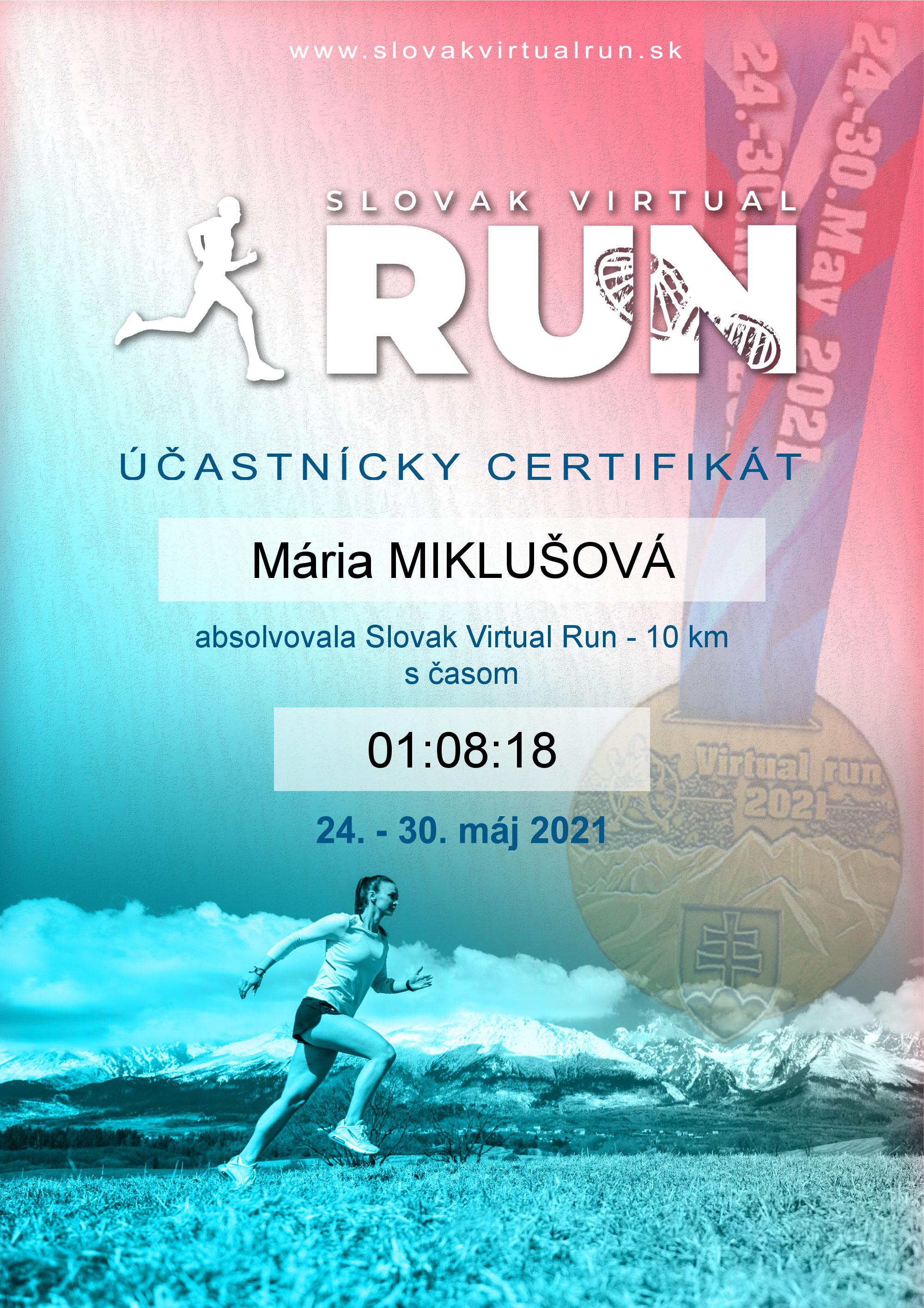 Účastnícky list pretekára MIKLUŠOVÁ Mária