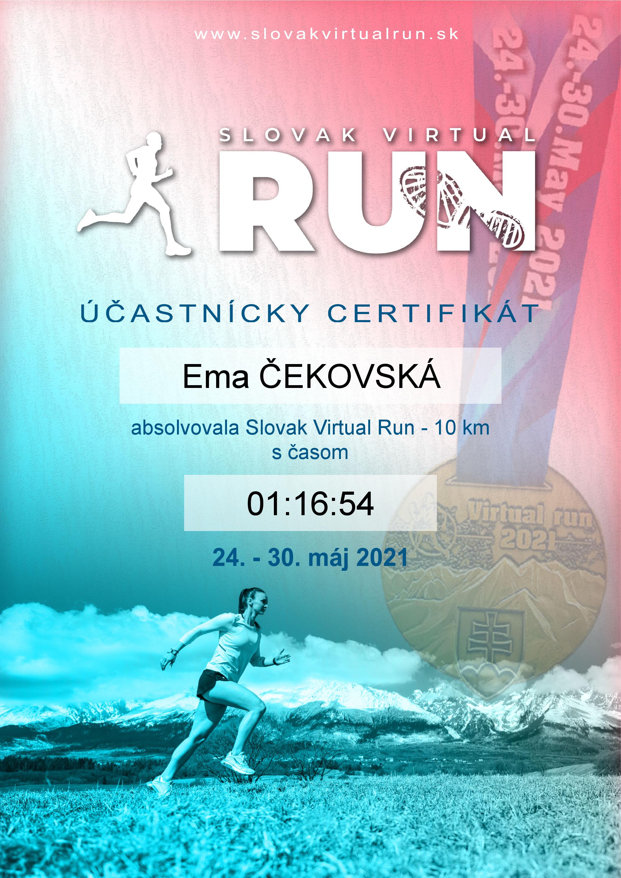 Účastnícky list pretekára ČEKOVSKÁ Ema