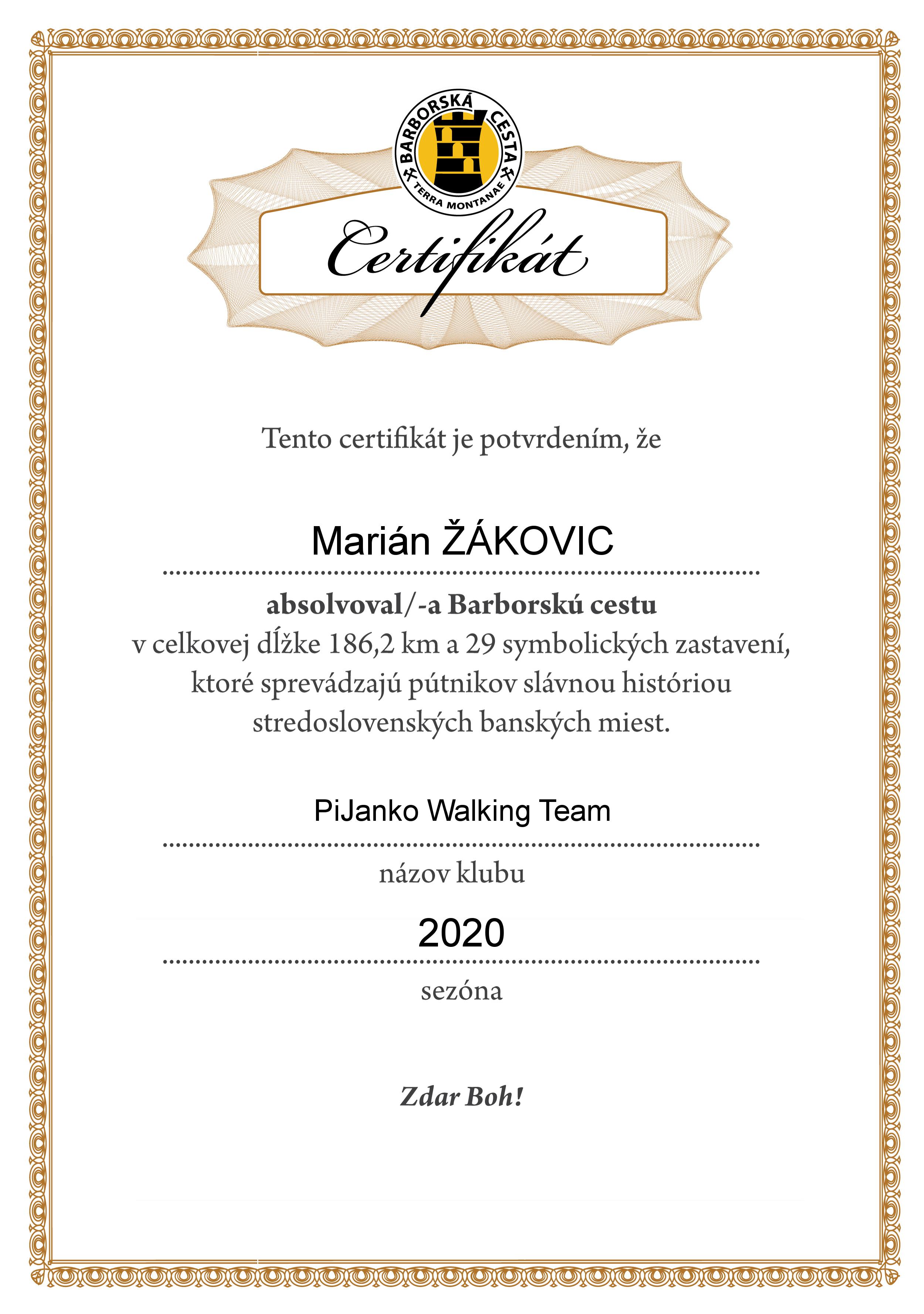 Účastnícky list pretekára ŽÁKOVIC Marián