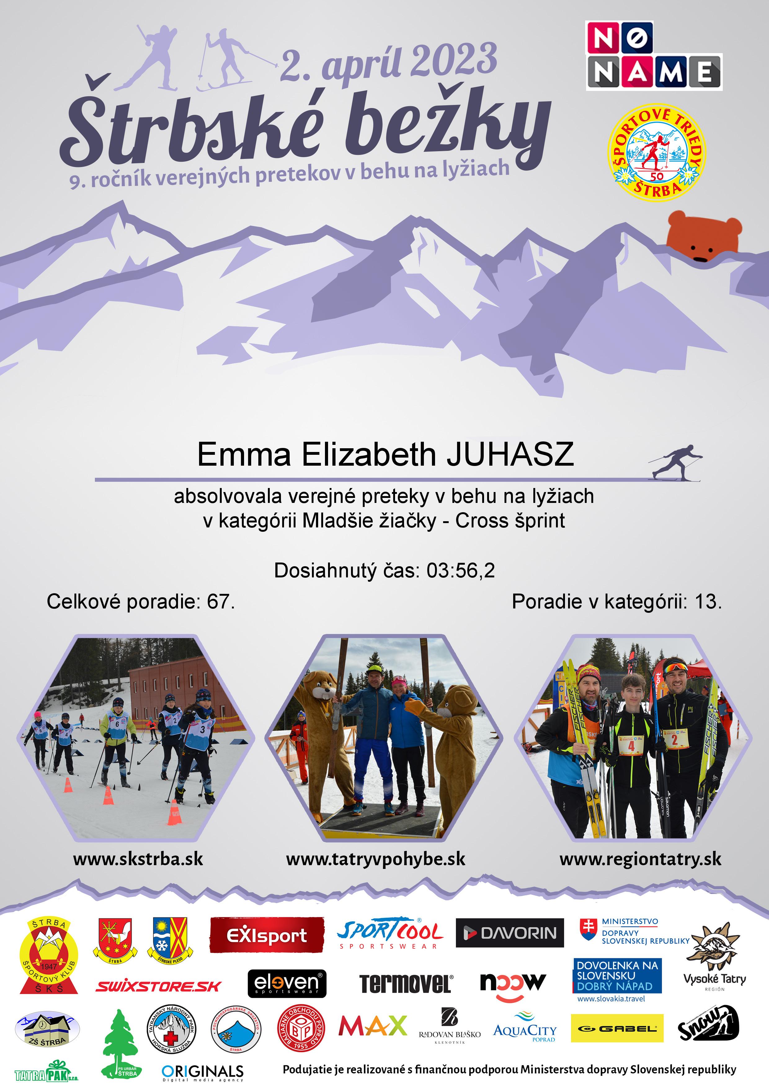Účastnícky list pretekára JUHASZ Emma Elizabeth