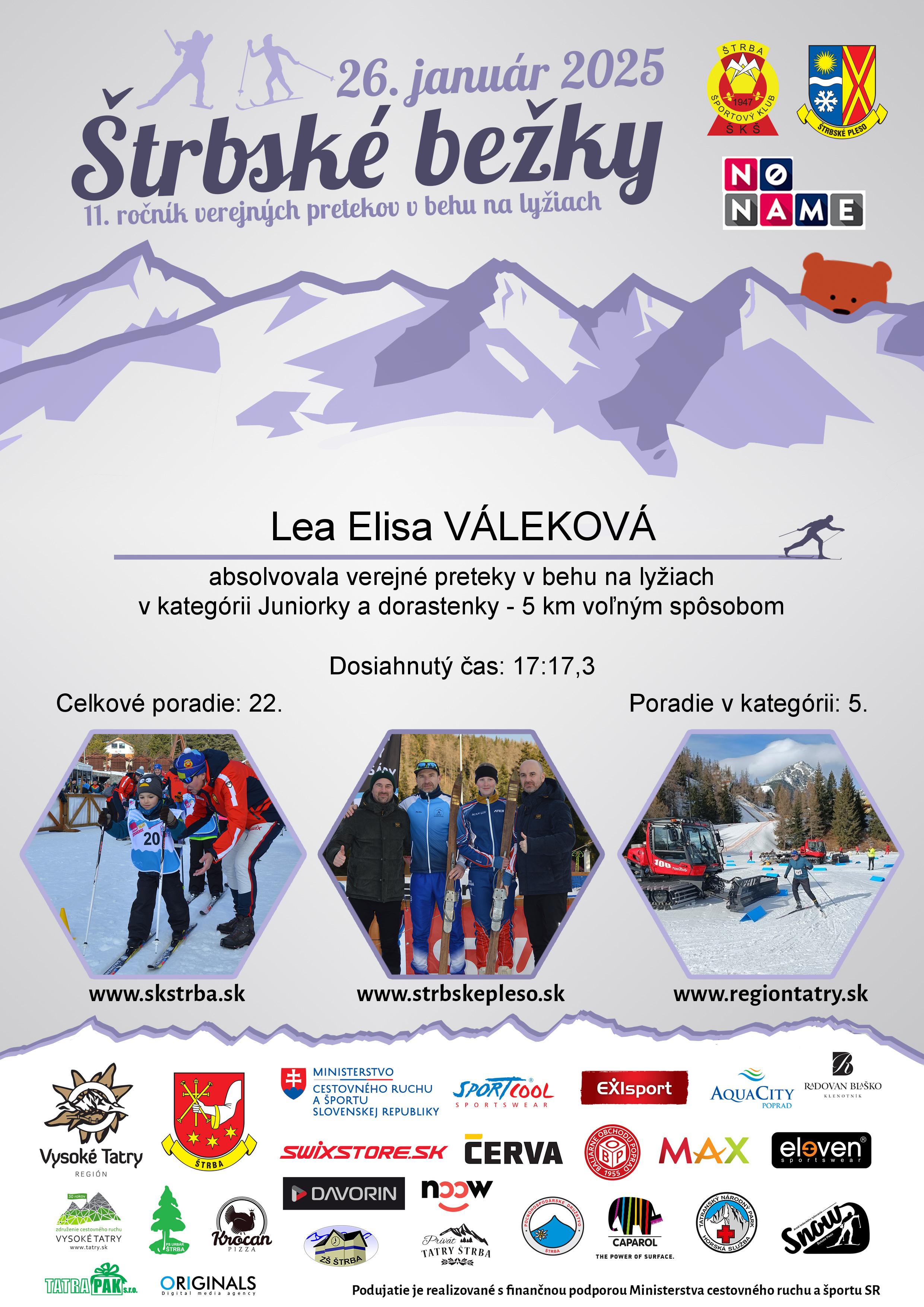 Účastnícky list pretekára VÁLEKOVÁ Lea Elisa