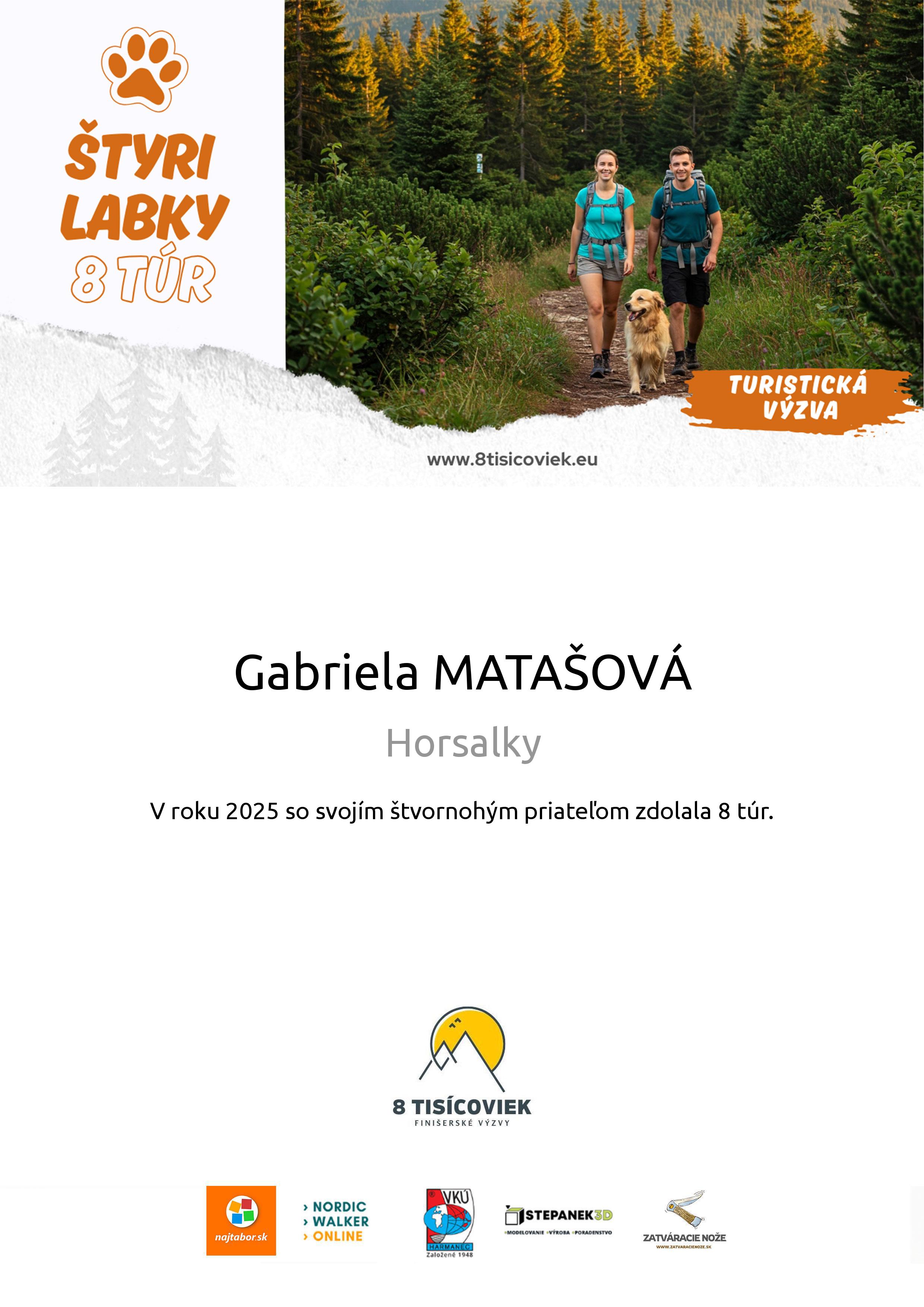 Účastnícky list pretekára MATAŠOVÁ Gabriela