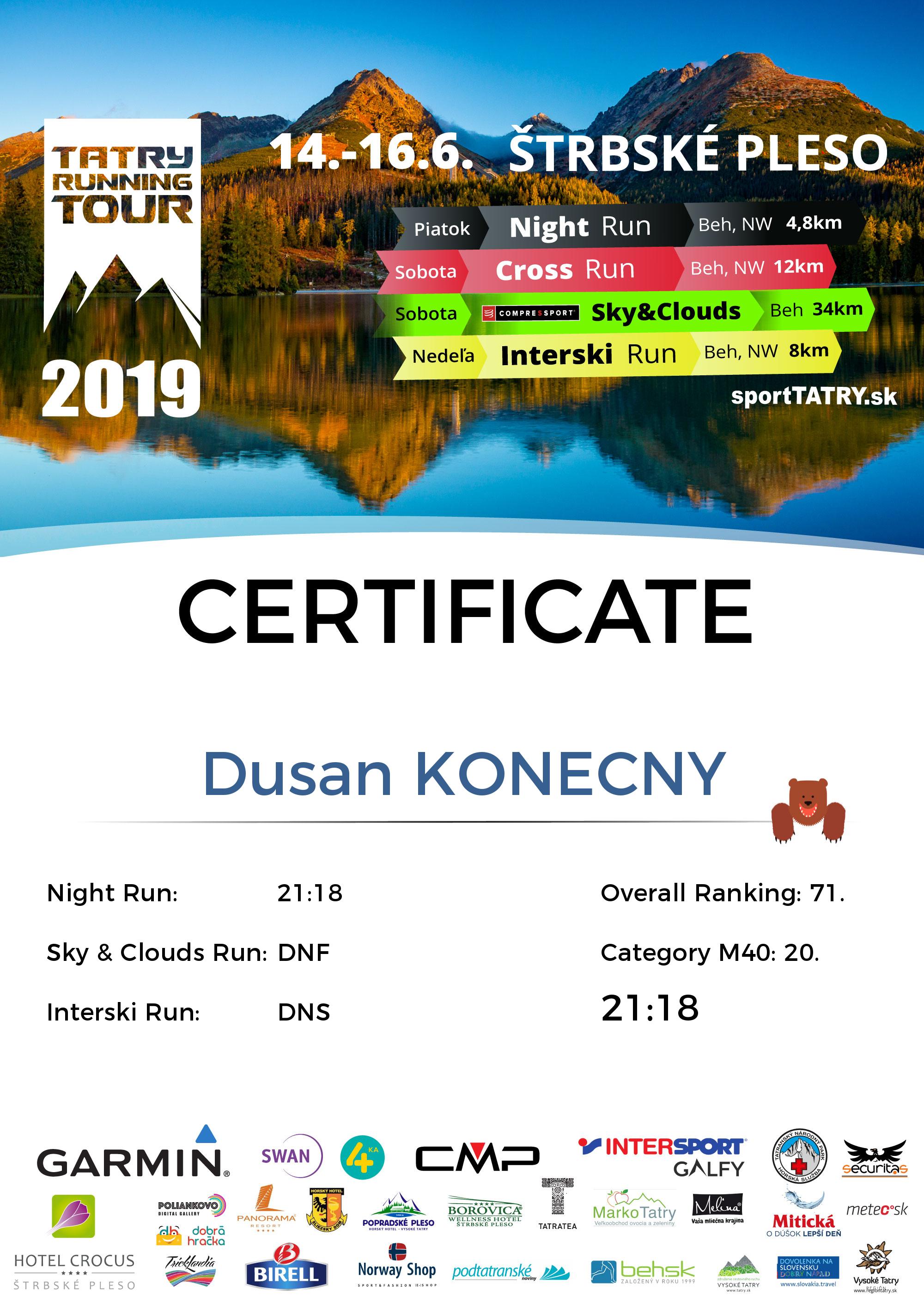 Účastnícky list: KONECNY Dusan
