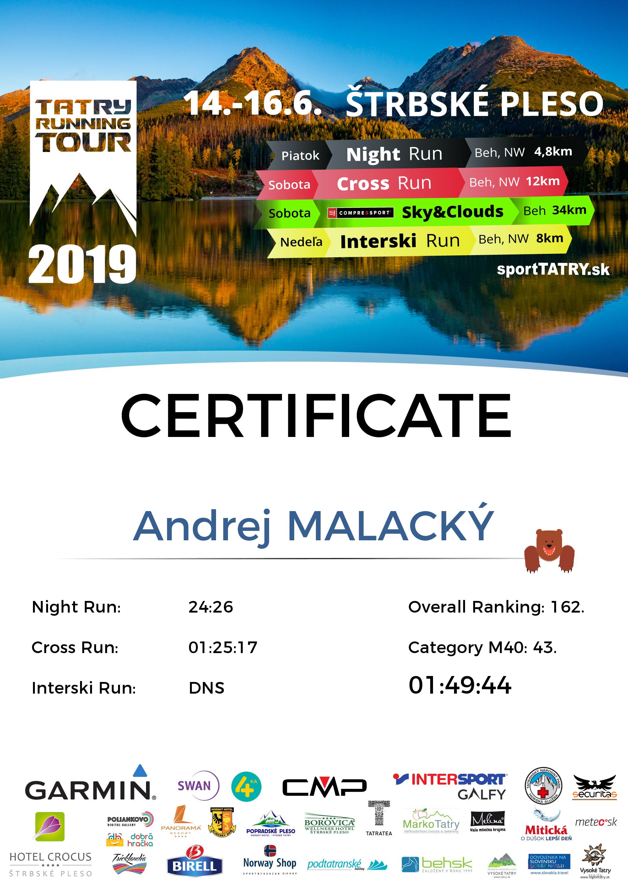 Účastnícky list: MALACKÝ Andrej
