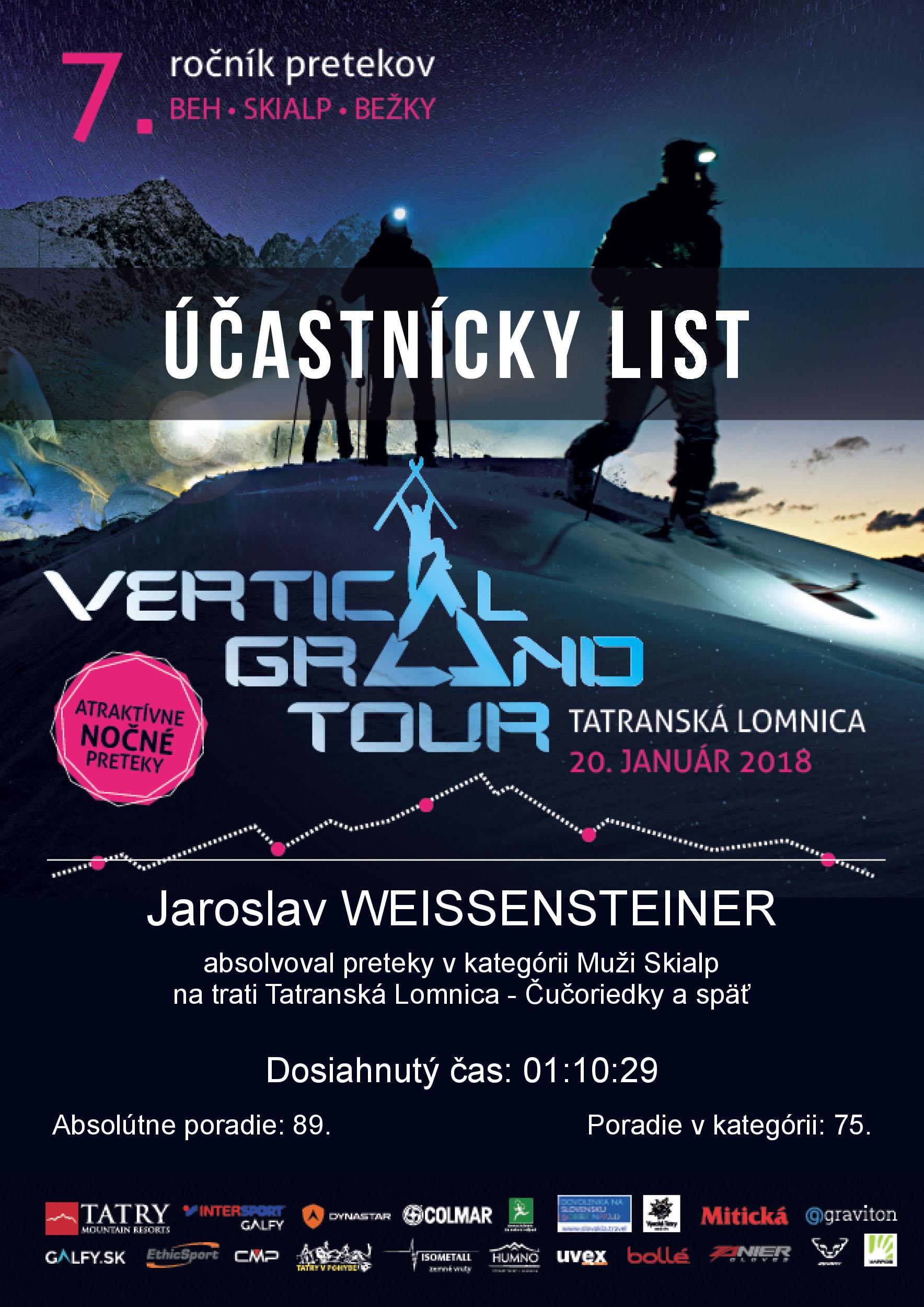 Účastnícky list pretekára WEISSENSTEINER Jaroslav
