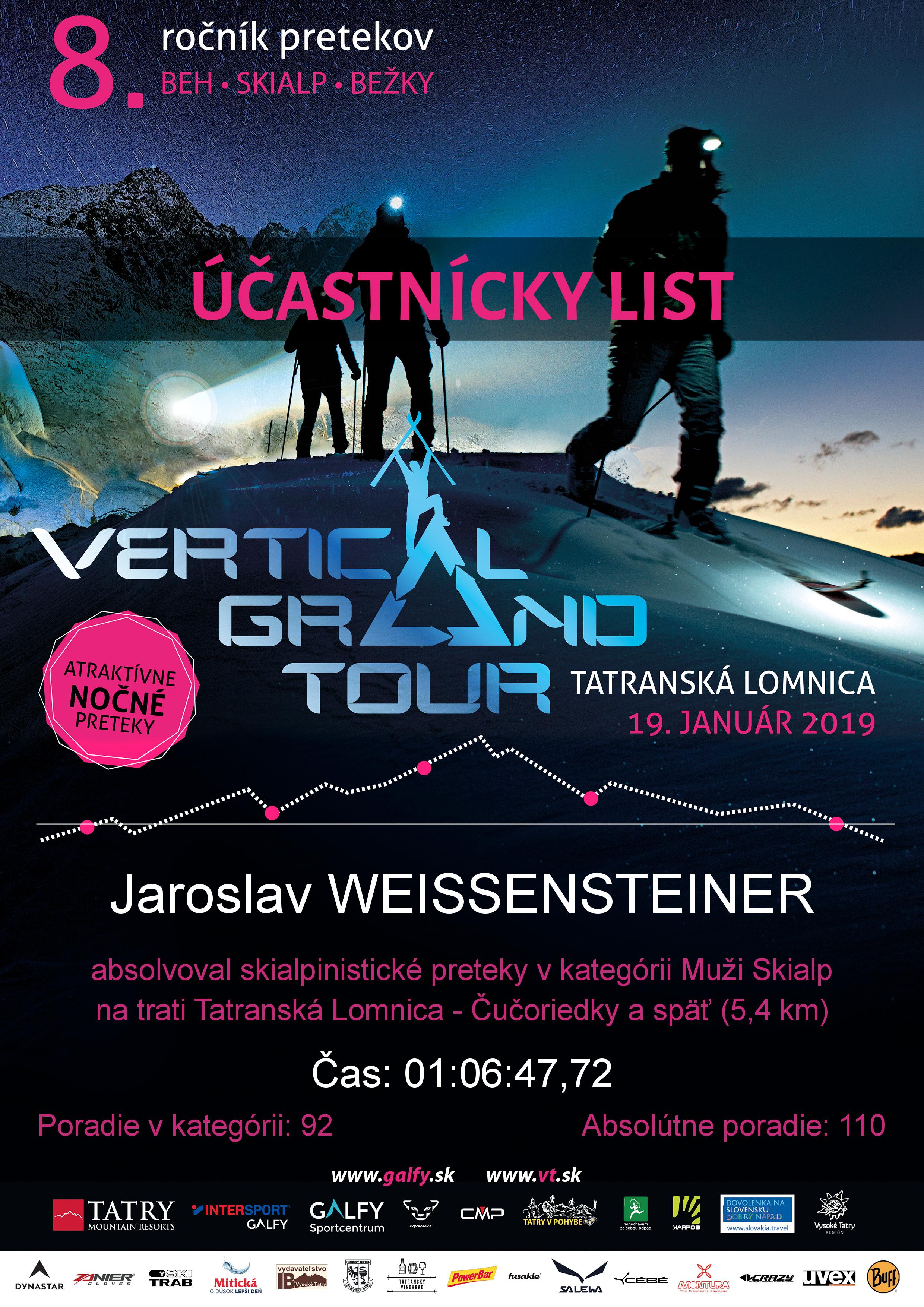 Účastnícky list pretekára WEISSENSTEINER Jaroslav