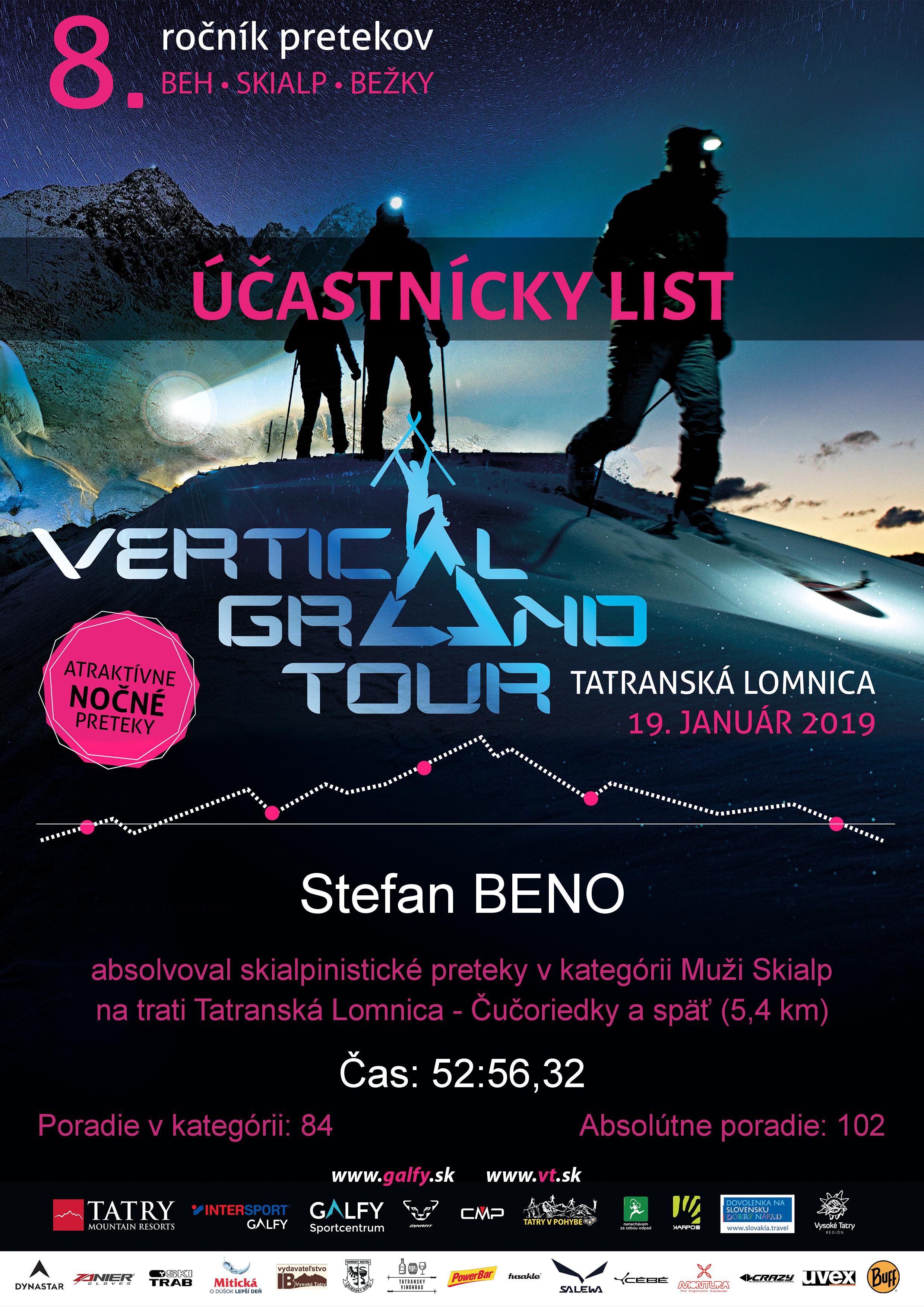 Účastnícky list pretekára BENO Stefan
