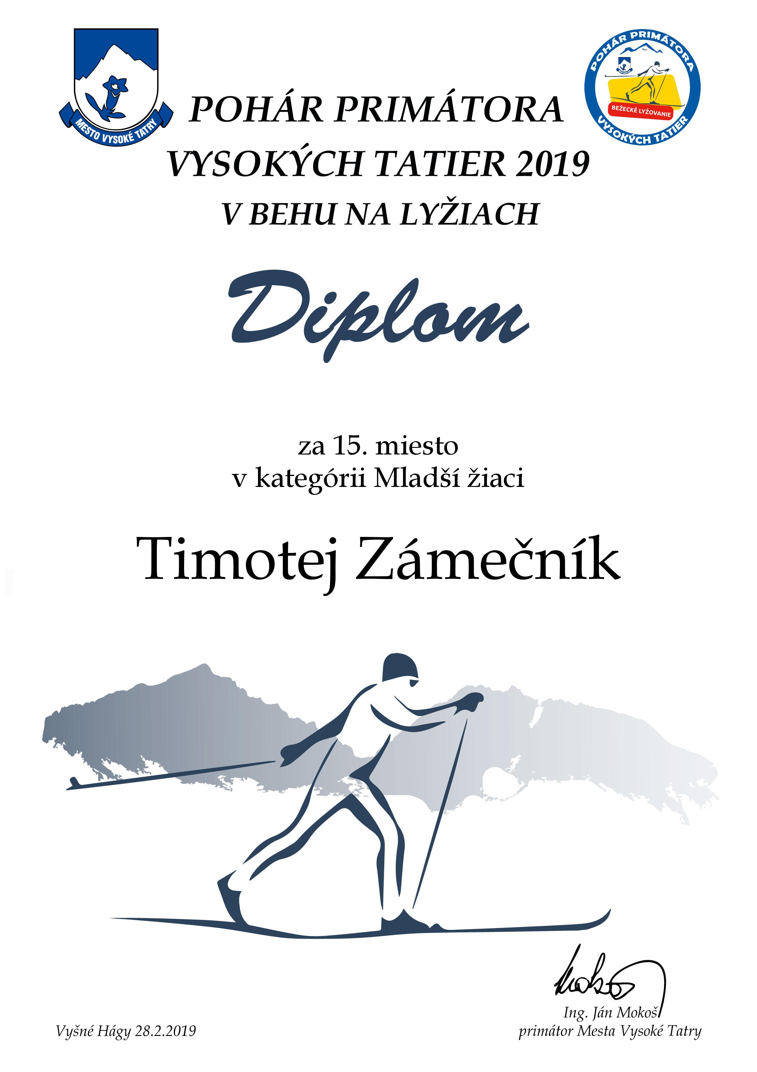 Účastnícky list pretekára Zámečník Timotej