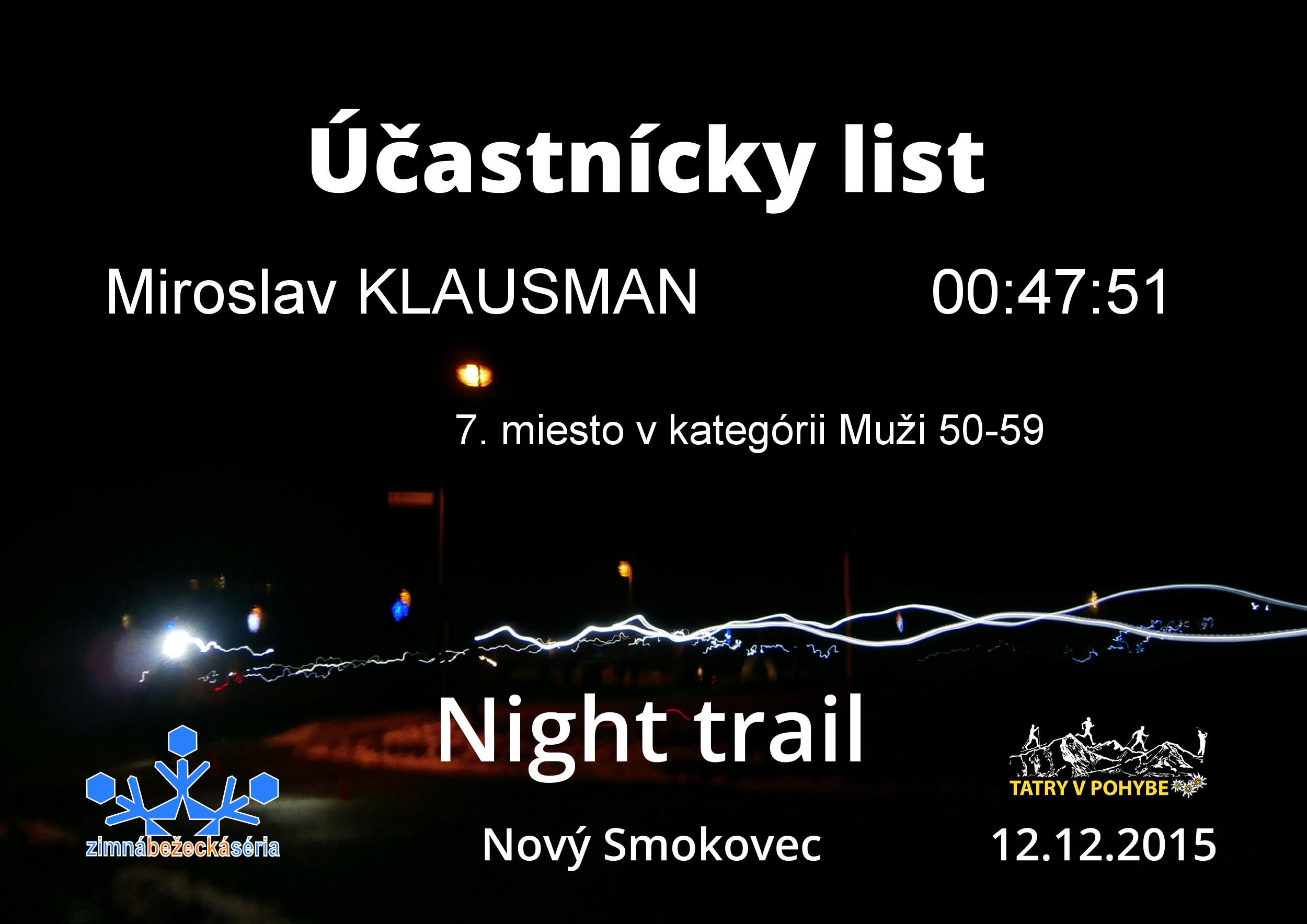 Účastnícky list pretekára KLAUSMAN Miroslav