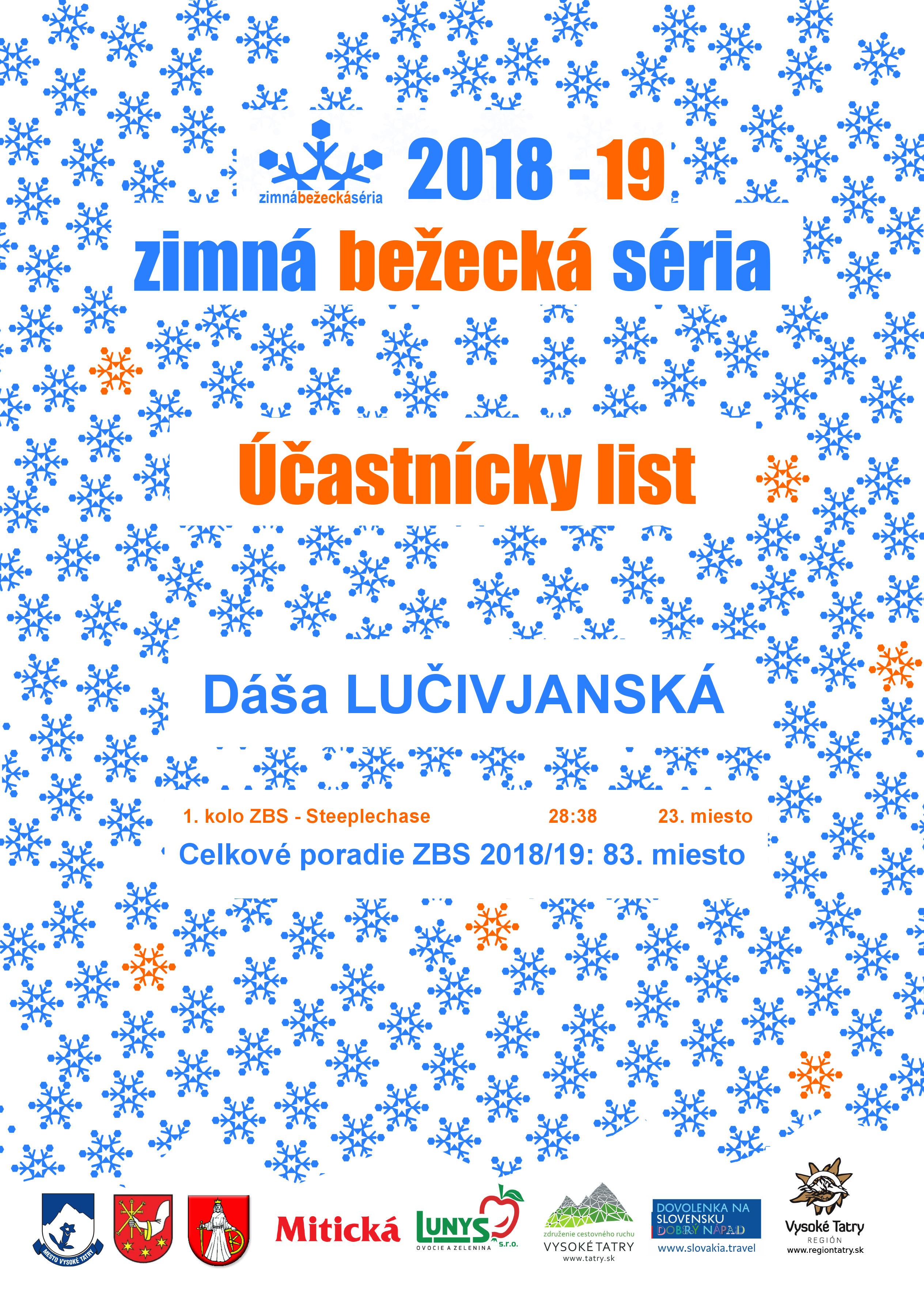 Účastnícky list pretekára LUČIVJANSKÁ Dáša