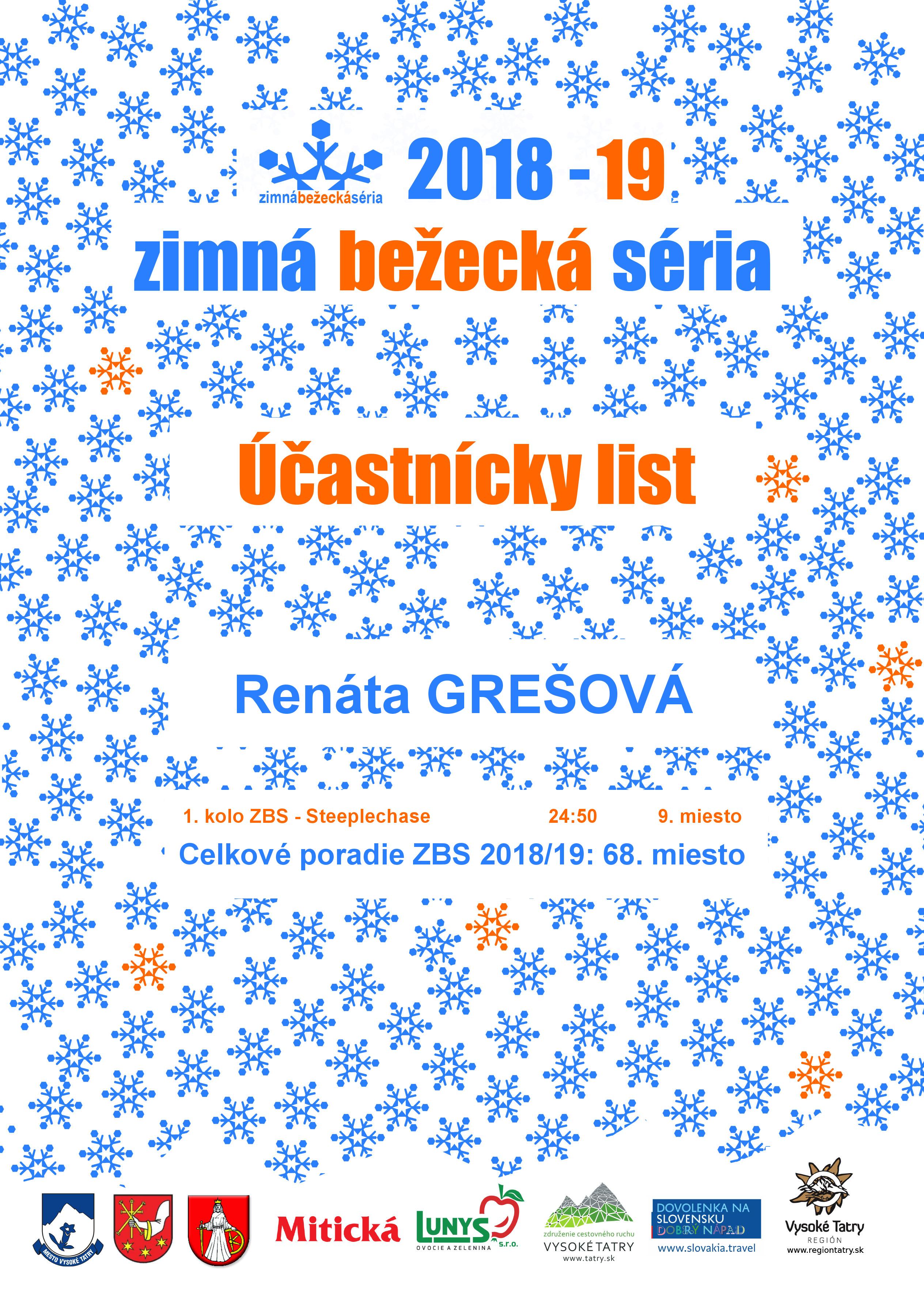 Účastnícky list pretekára GREŠOVÁ Renáta
