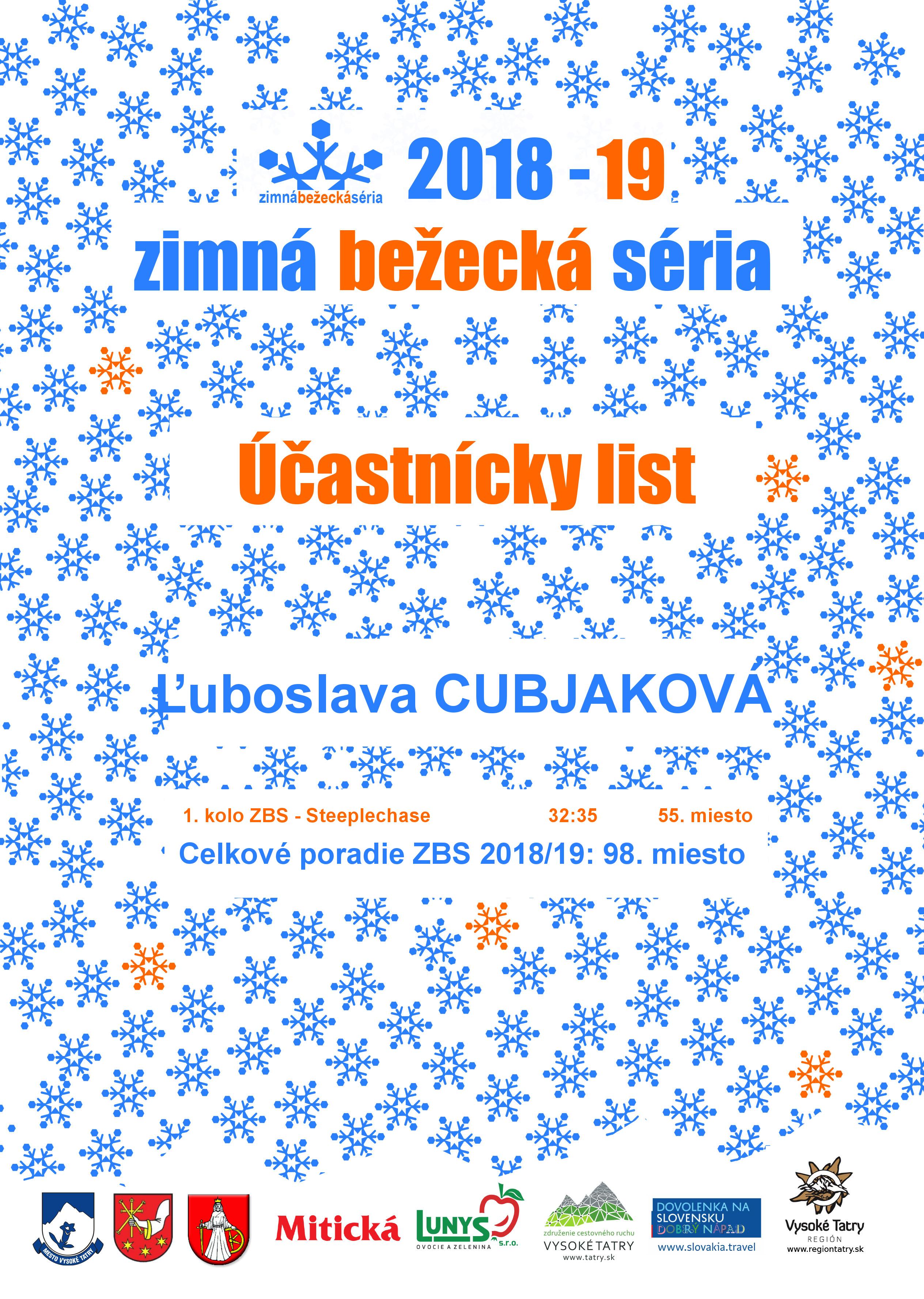 Účastnícky list pretekára CUBJAKOVÁ Ľuboslava