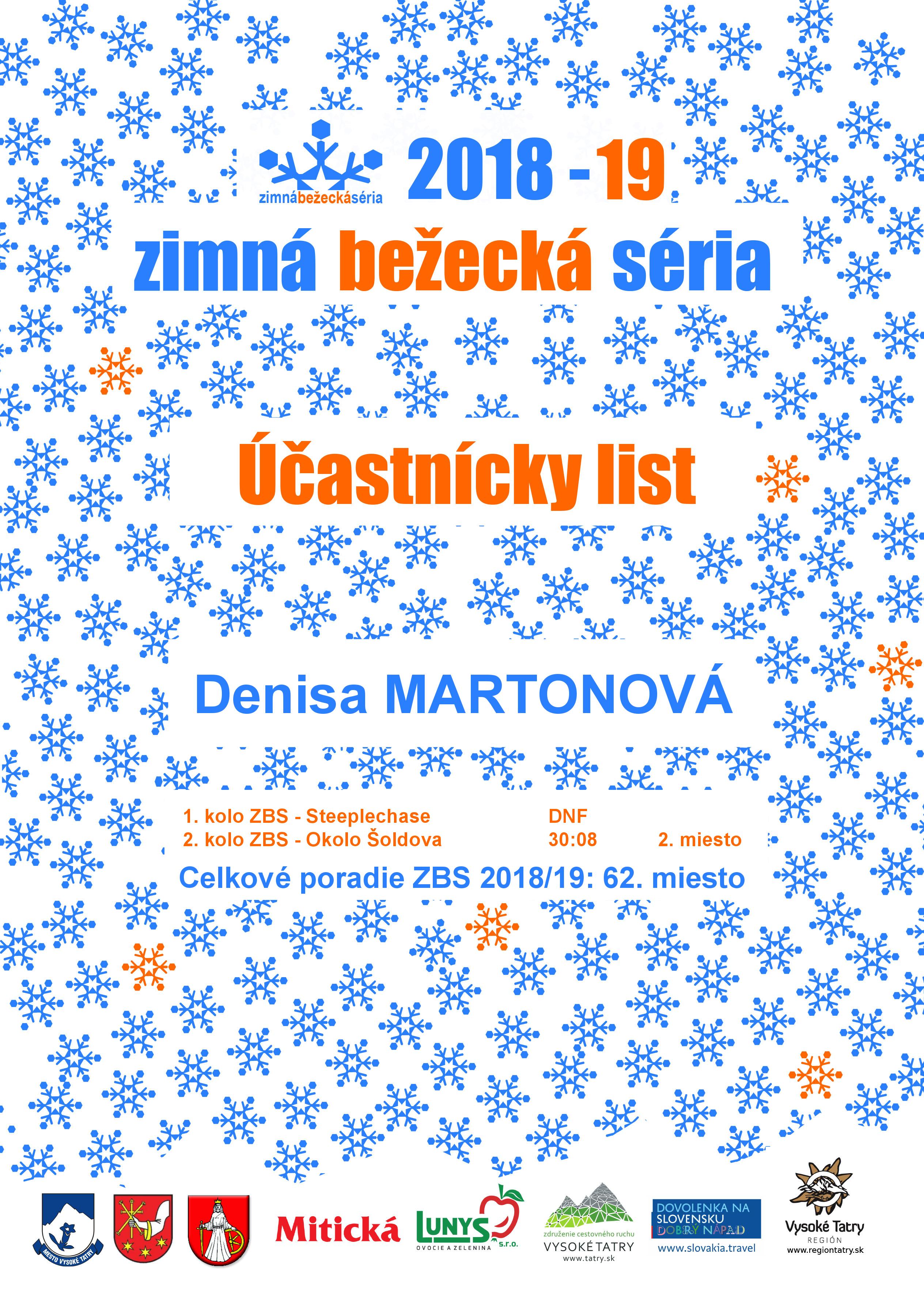Účastnícky list pretekára MARTONOVÁ Denisa
