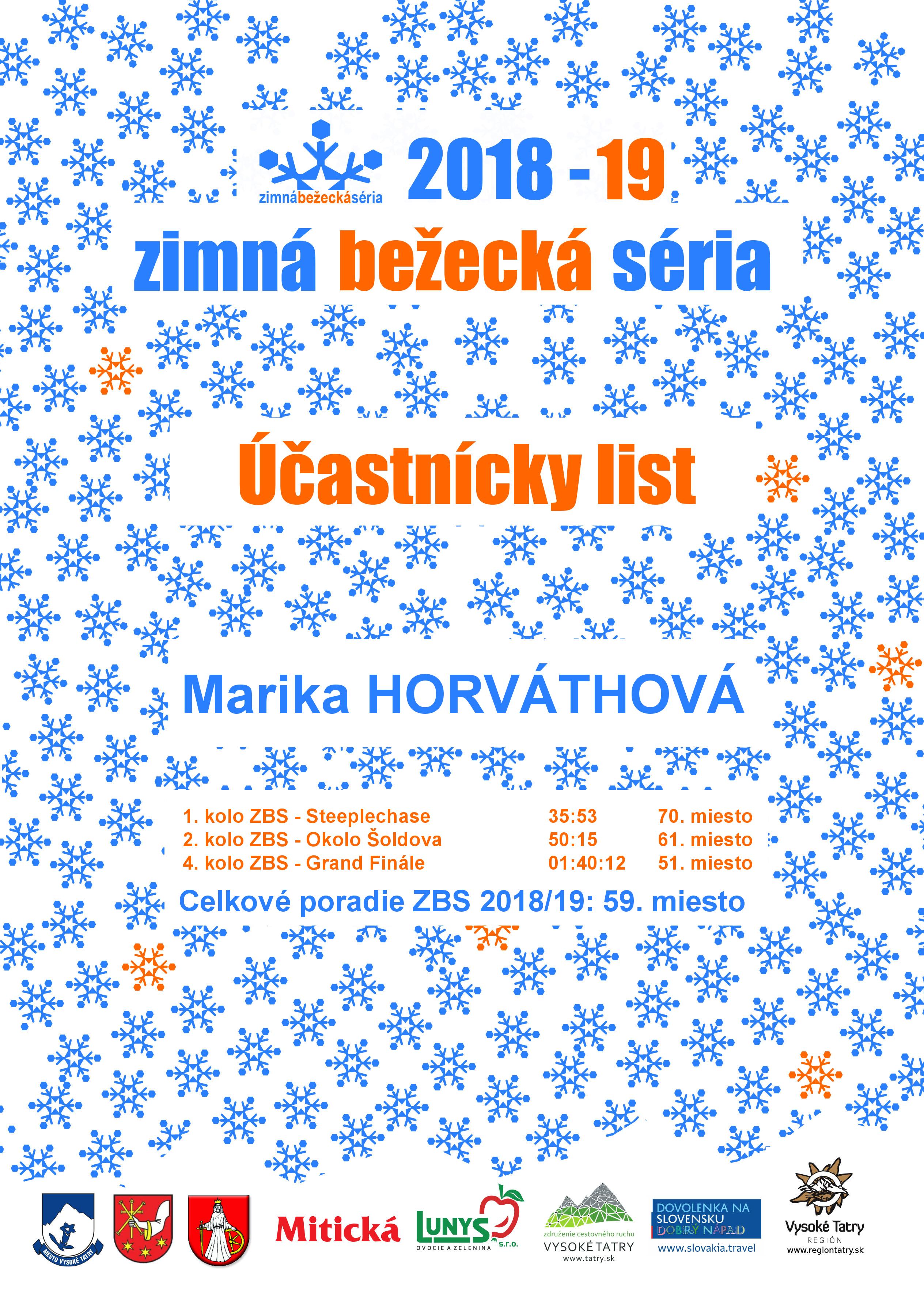 Účastnícky list pretekára HORVÁTHOVÁ Marika