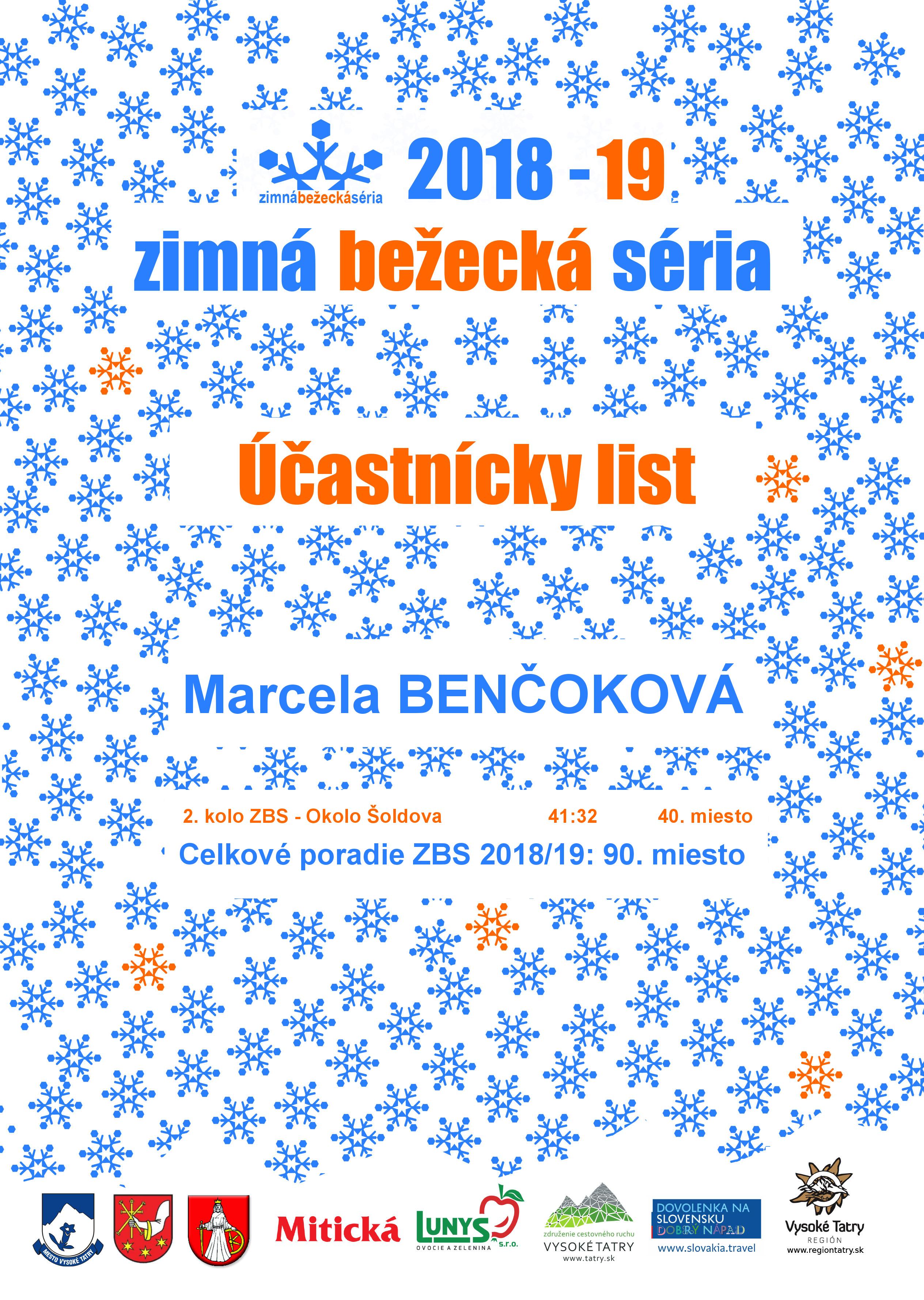 Účastnícky list pretekára BENČOKOVÁ Marcela