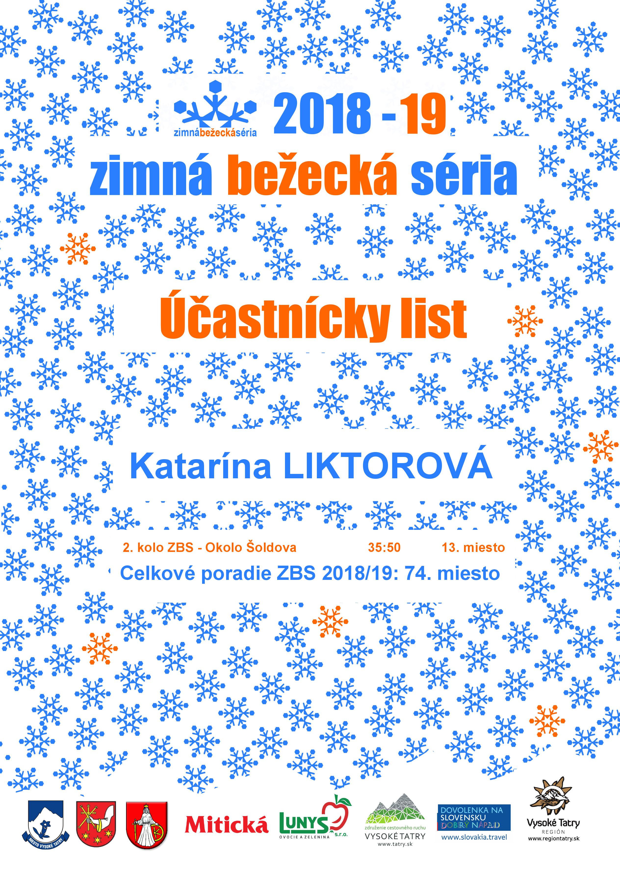 Účastnícky list pretekára LIKTOROVÁ Katarína