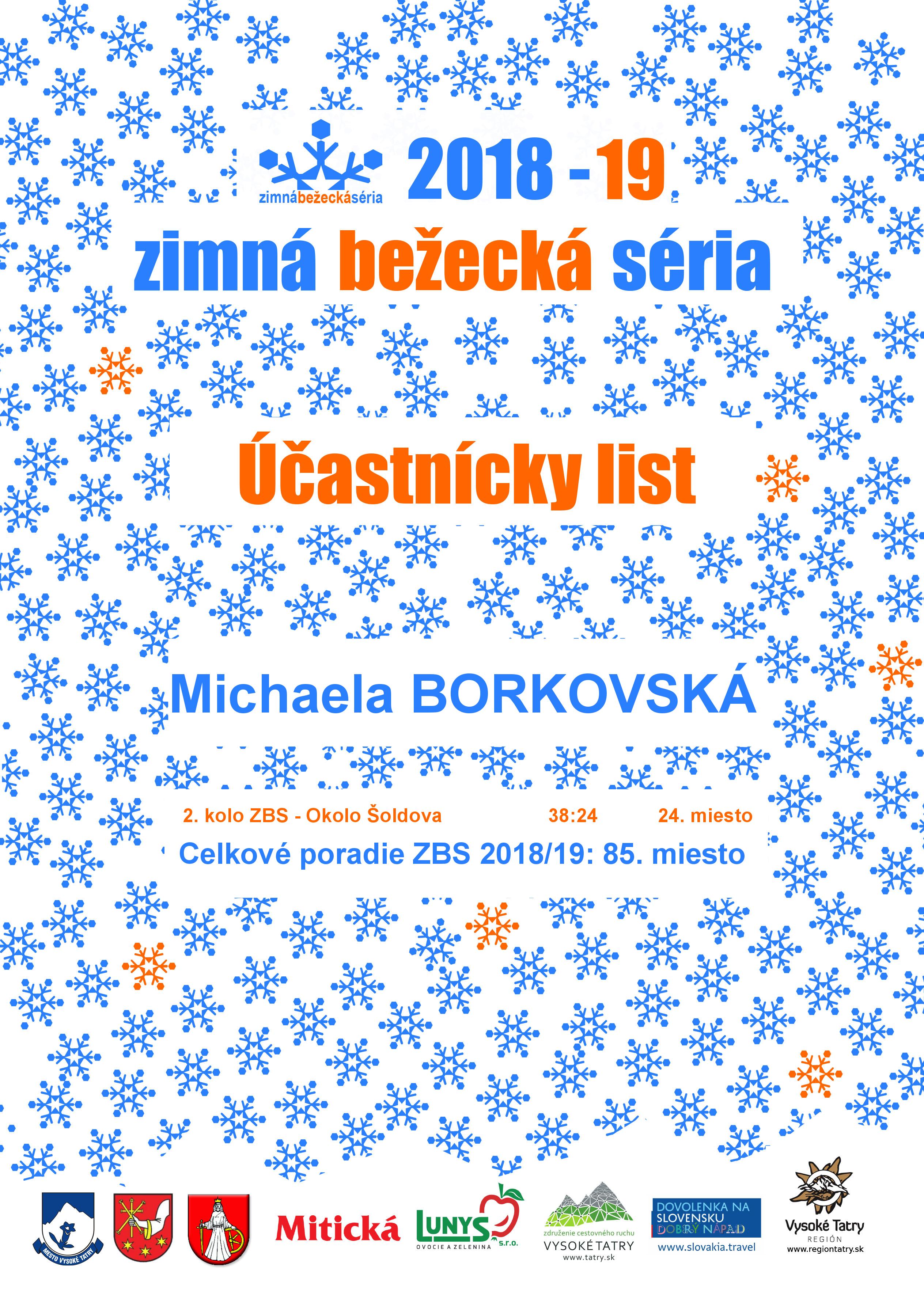 Účastnícky list pretekára BORKOVSKÁ Michaela
