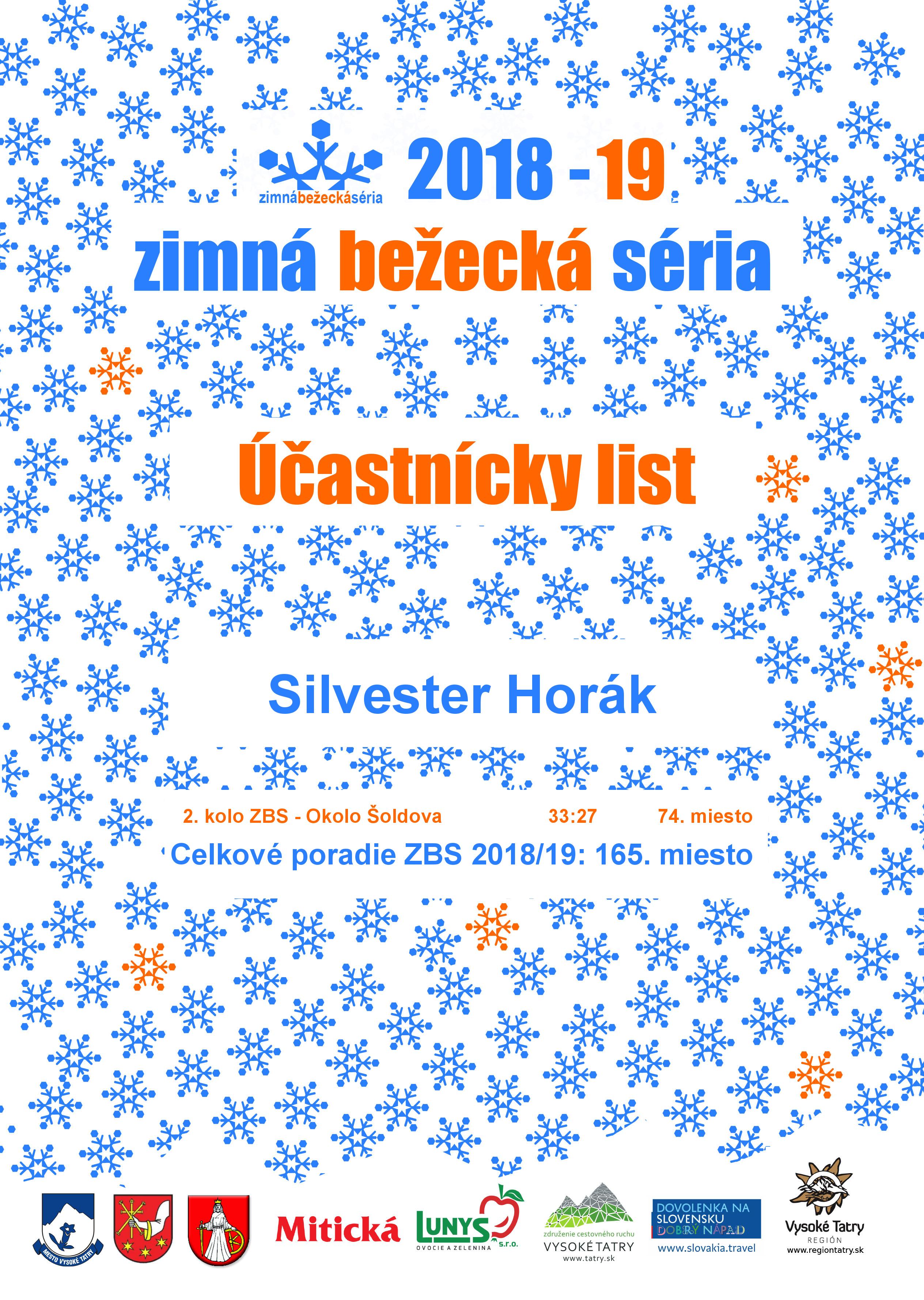 Účastnícky list pretekára Horák Silvester