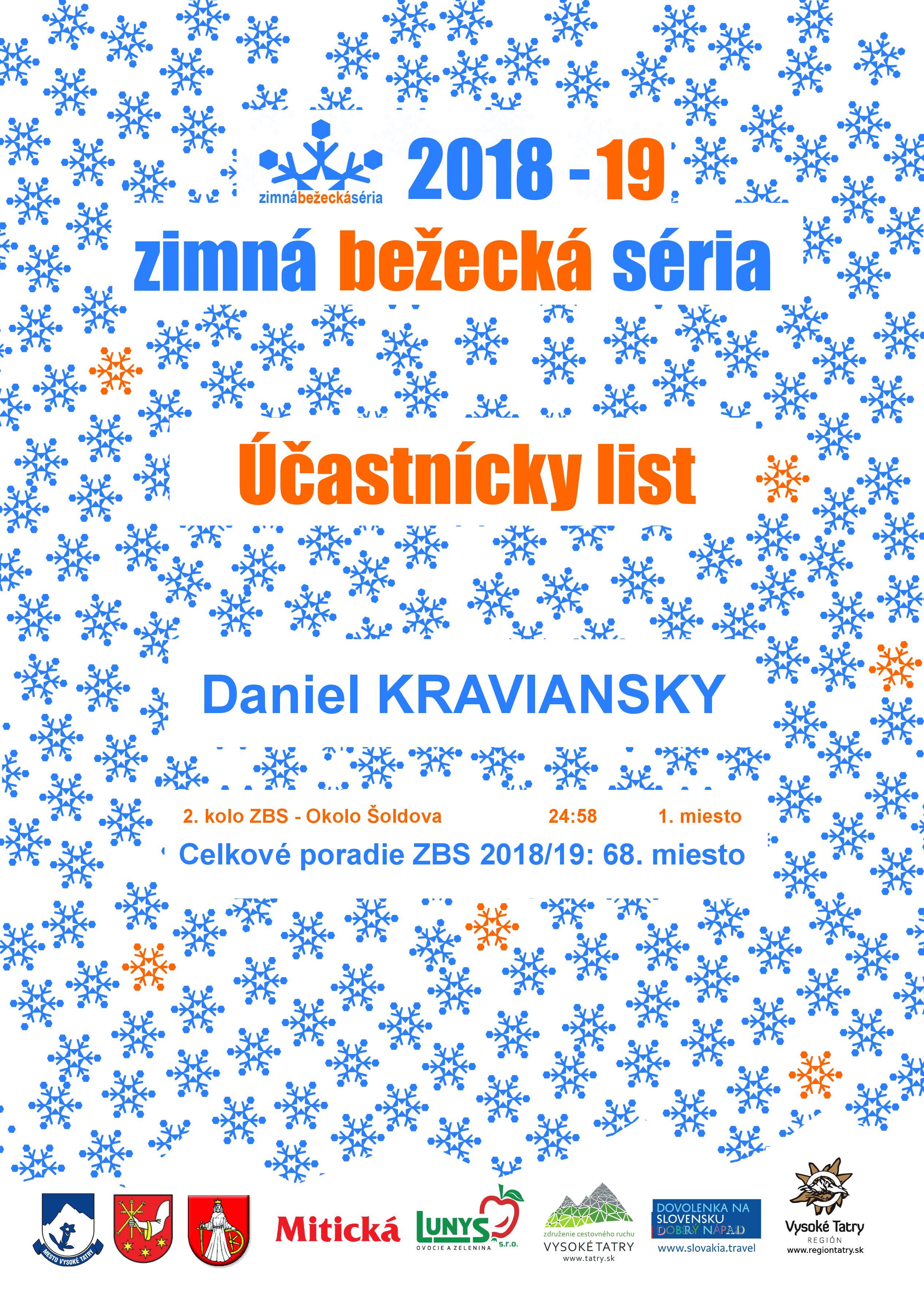 Účastnícky list pretekára KRAVIANSKY Daniel