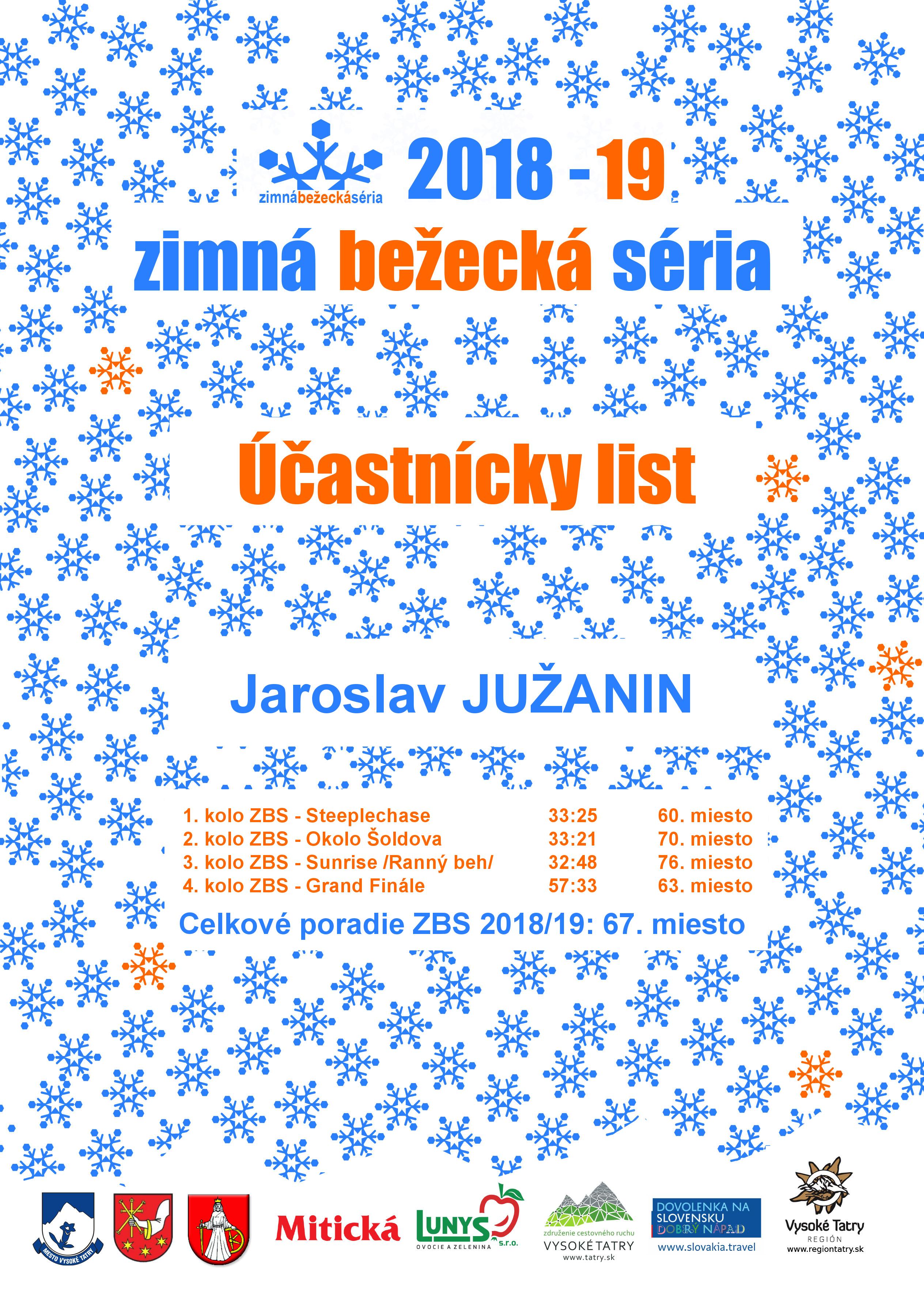 Účastnícky list pretekára JUŽANIN Jaroslav
