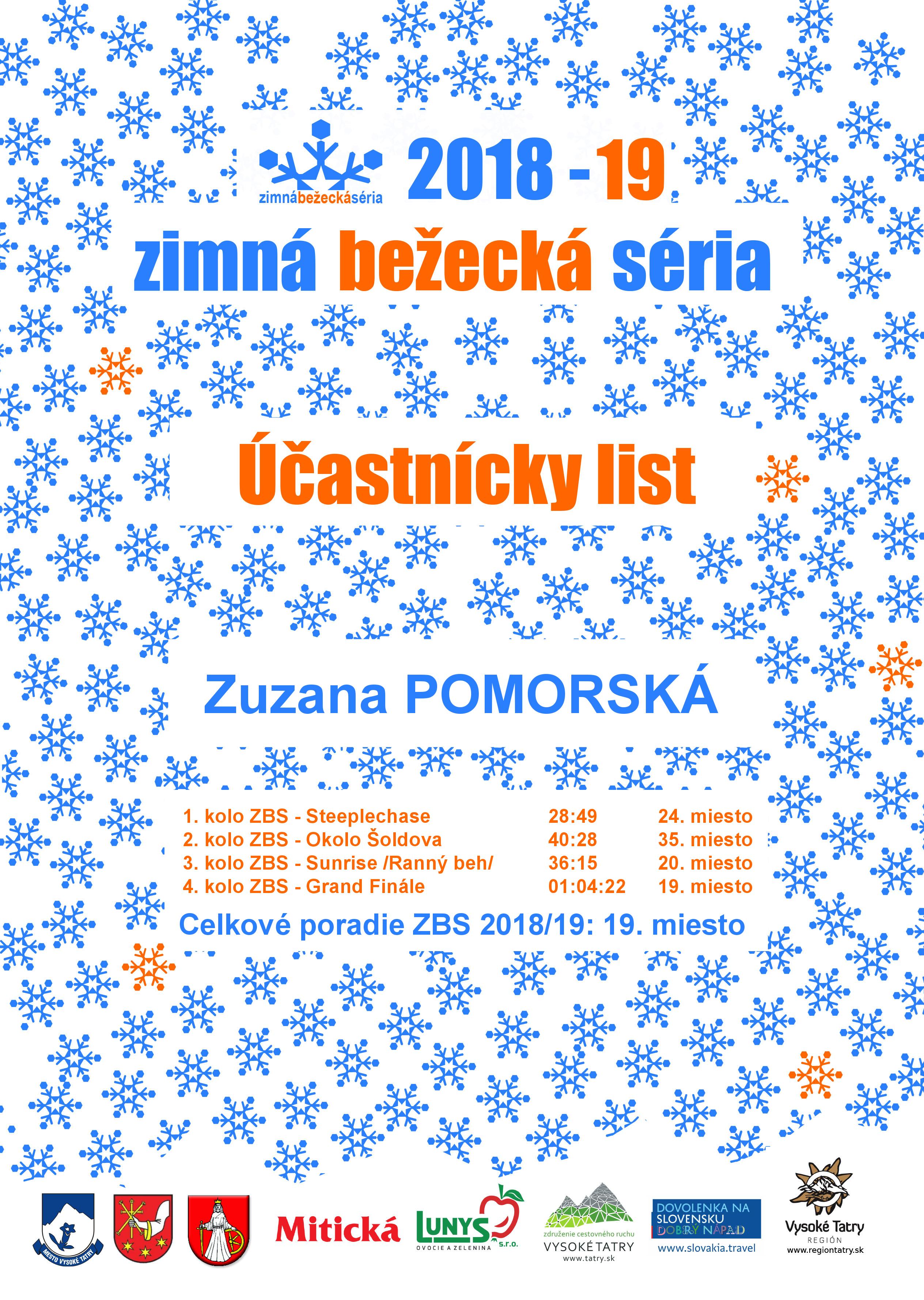Účastnícky list pretekára POMORSKÁ Zuzana