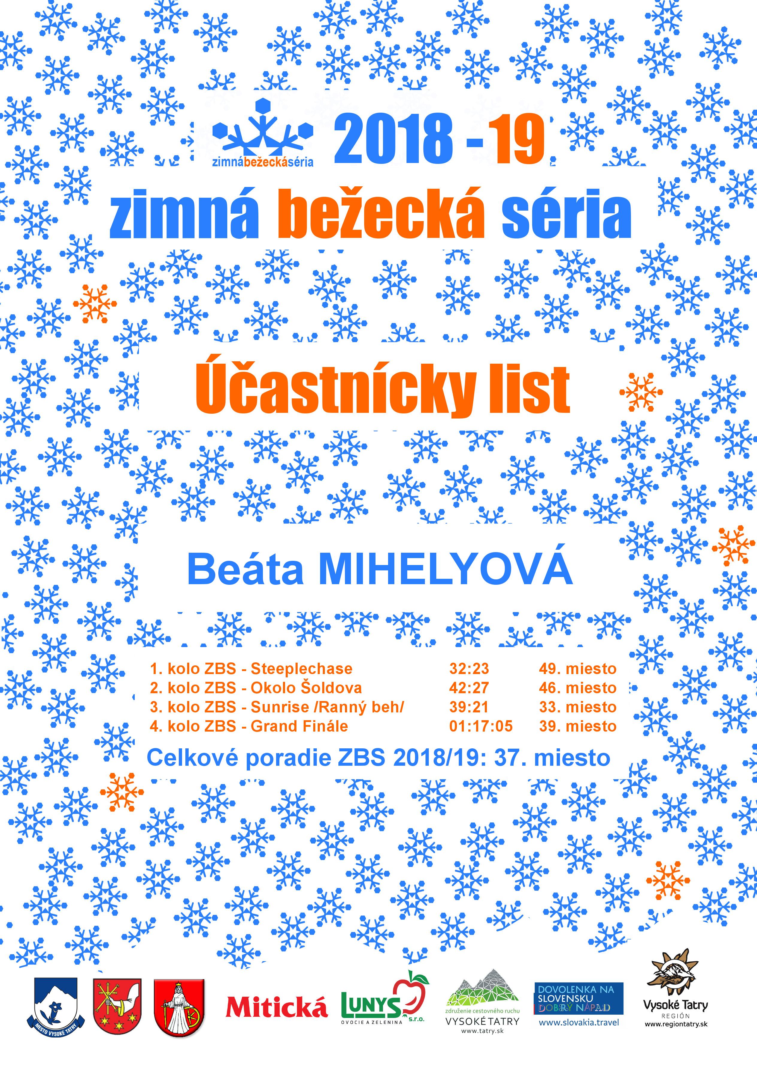 Účastnícky list pretekára MIHELYOVÁ Beáta