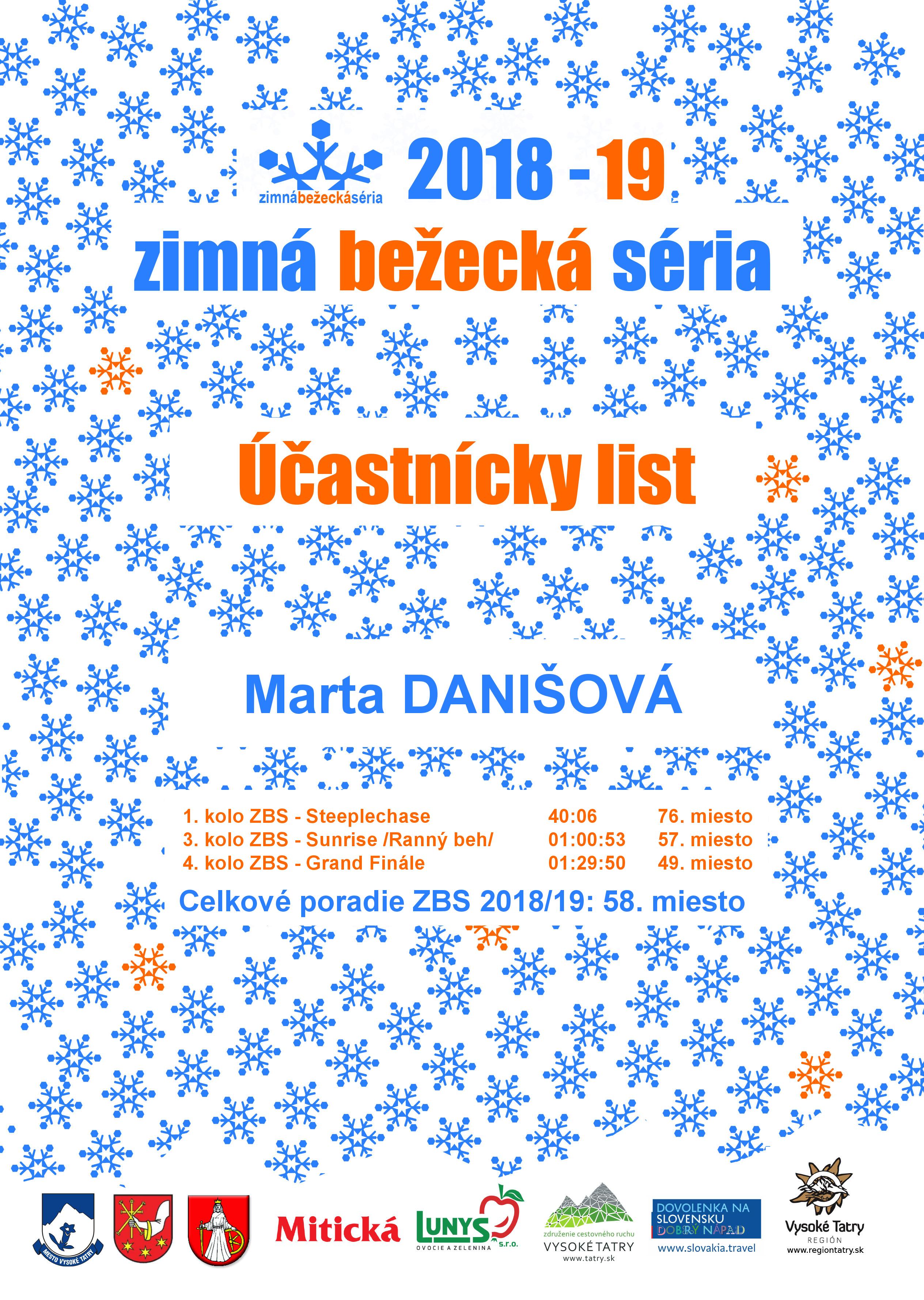 Účastnícky list pretekára DANIŠOVÁ Marta