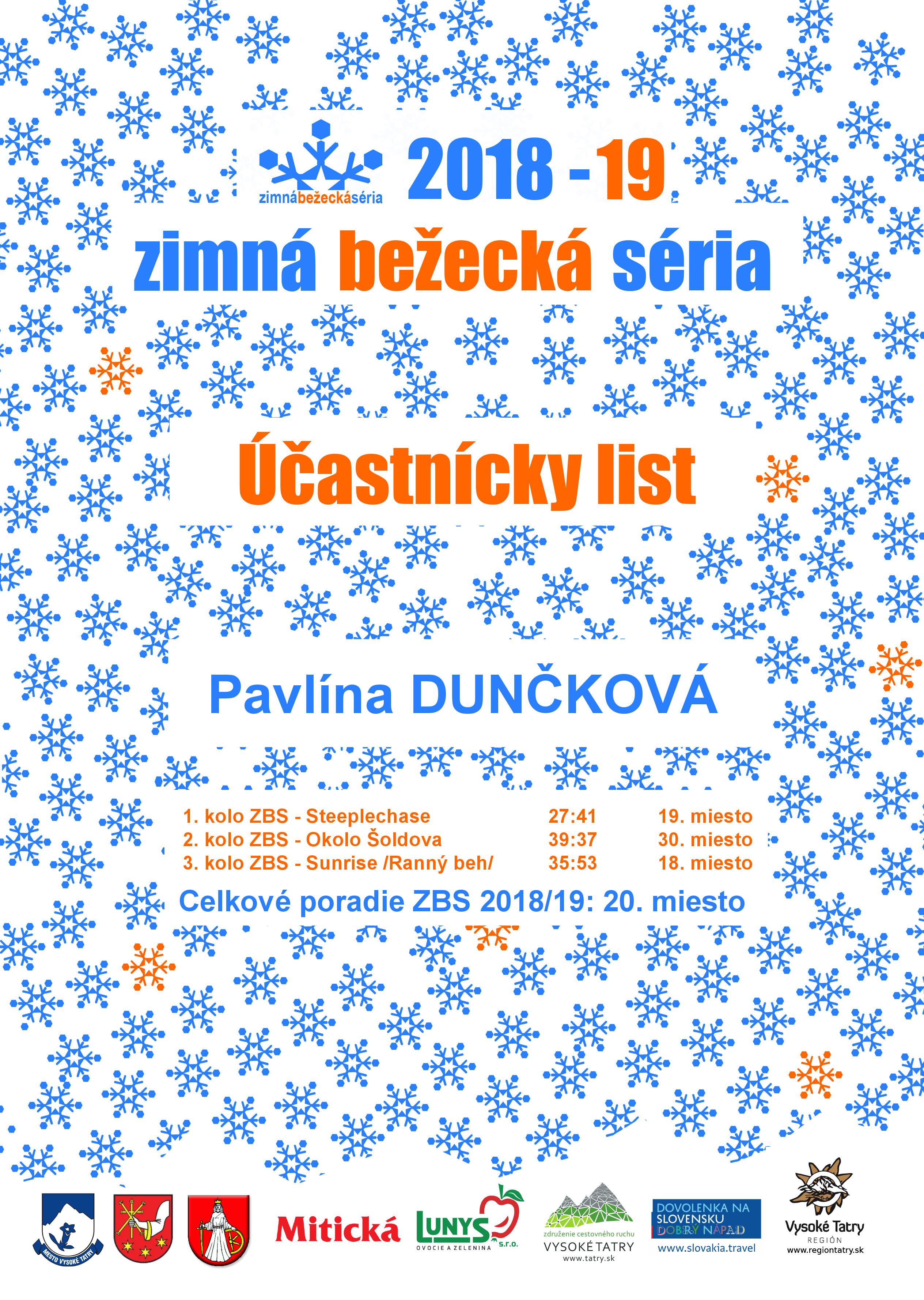 Účastnícky list pretekára DUNČKOVÁ Pavlína