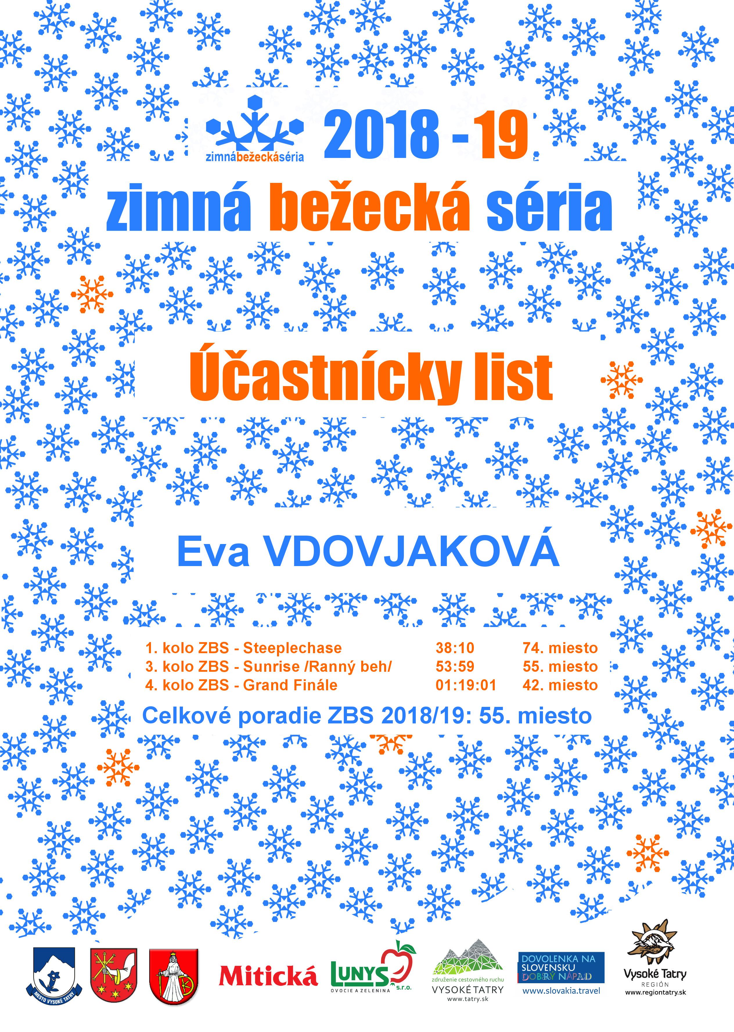 Účastnícky list pretekára VDOVJAKOVÁ Eva