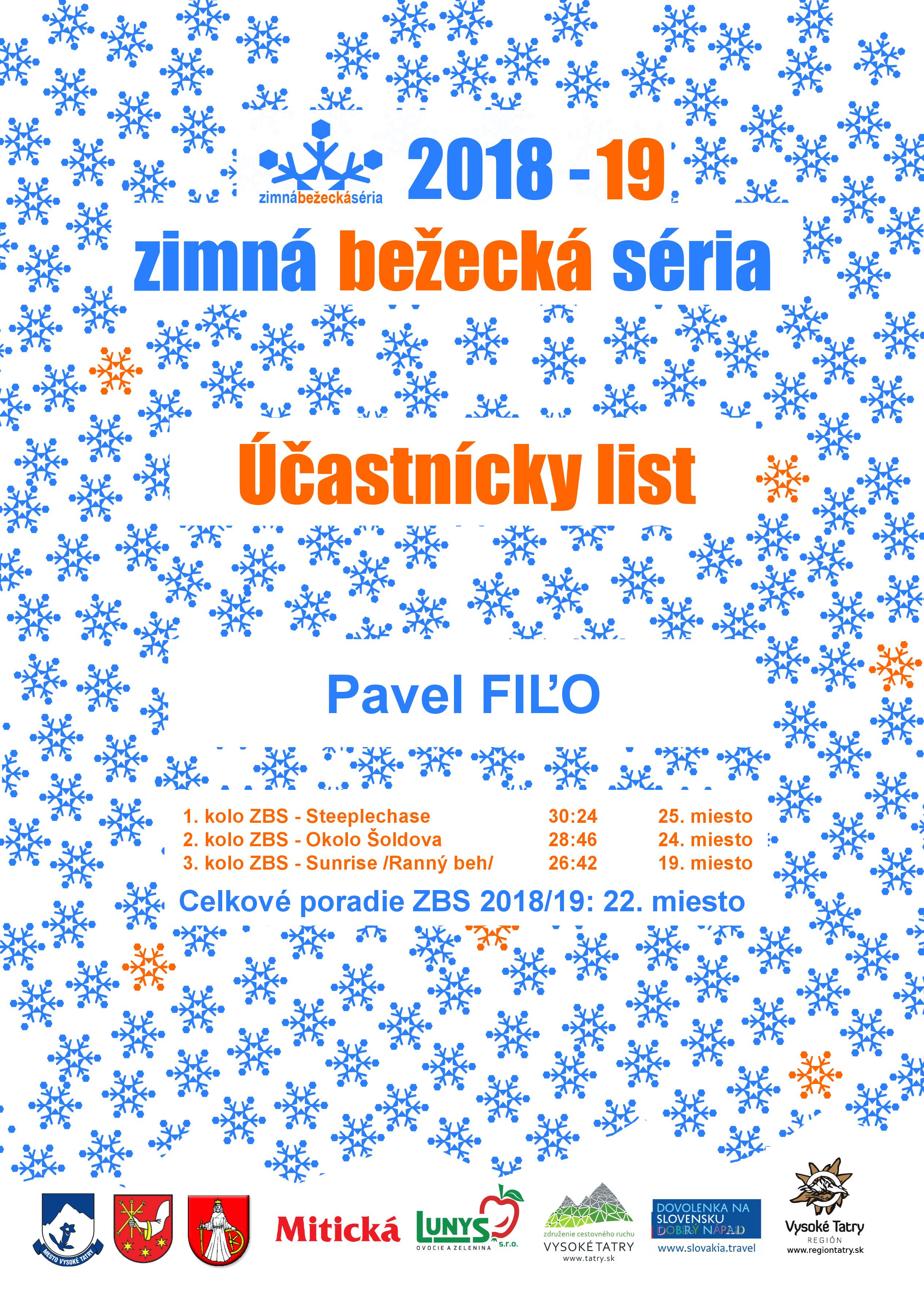 Účastnícky list pretekára FIĽO Pavel