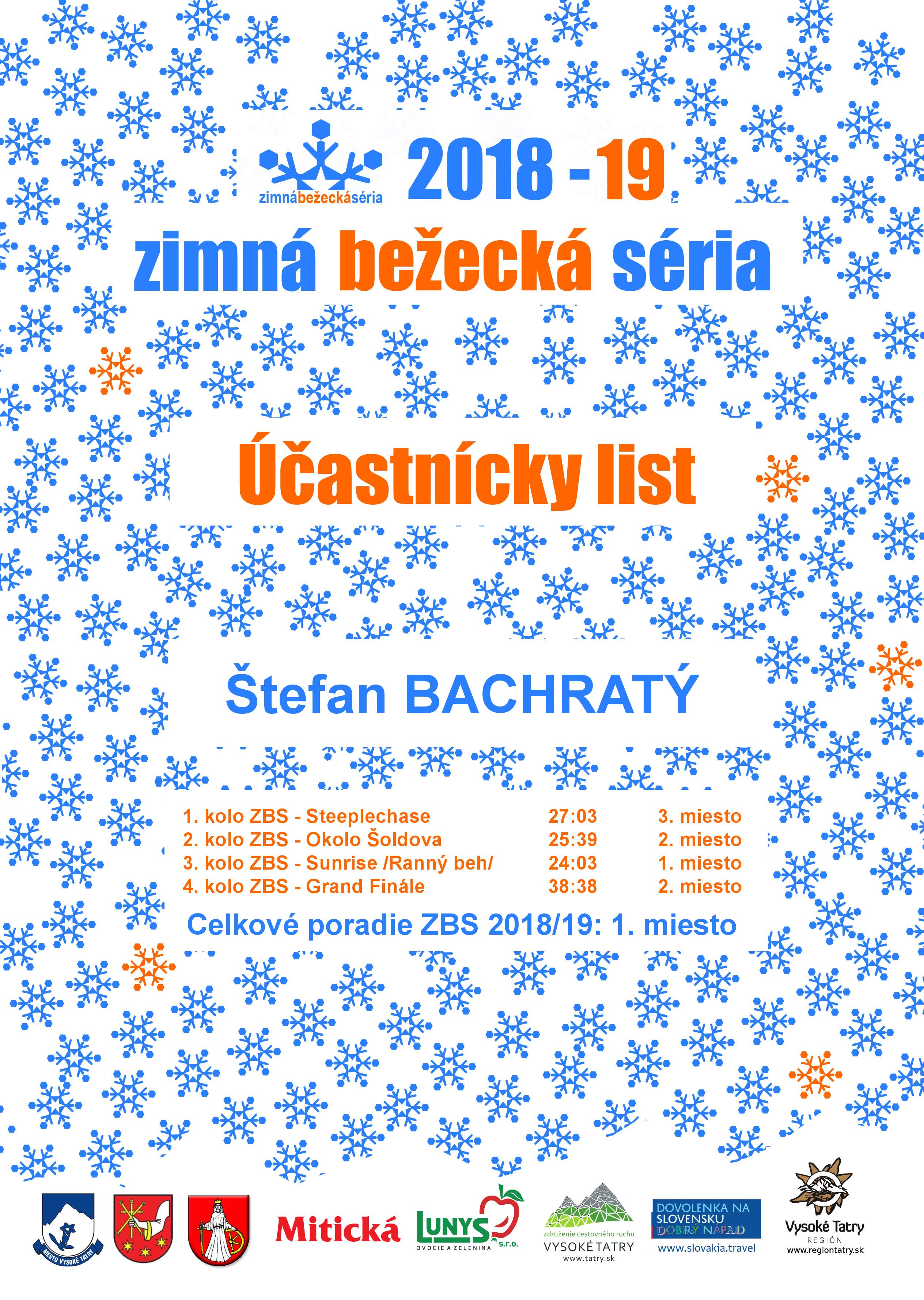 Účastnícky list pretekára BACHRATÝ Štefan