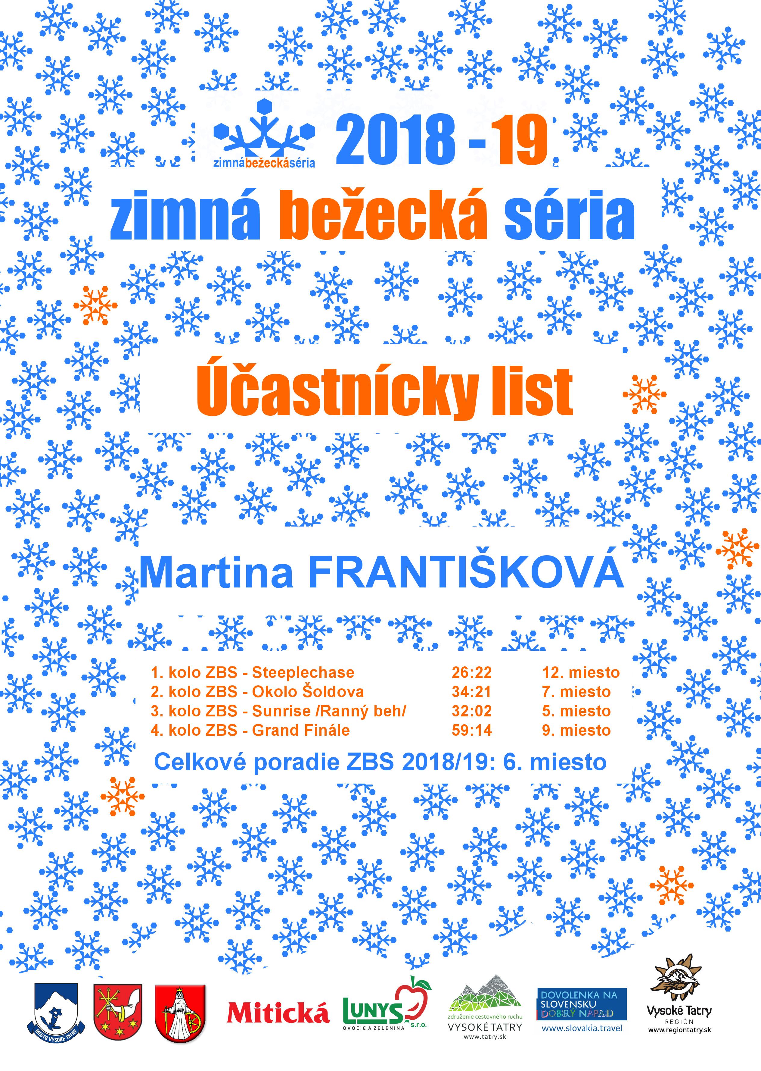 Účastnícky list pretekára FRANTIŠKOVÁ Martina