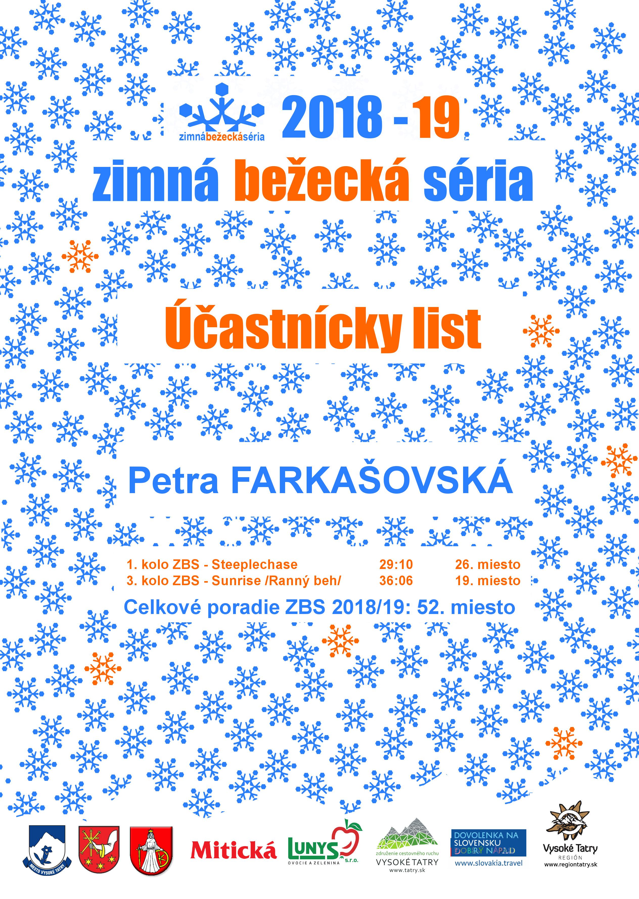 Účastnícky list pretekára FARKAŠOVSKÁ Petra