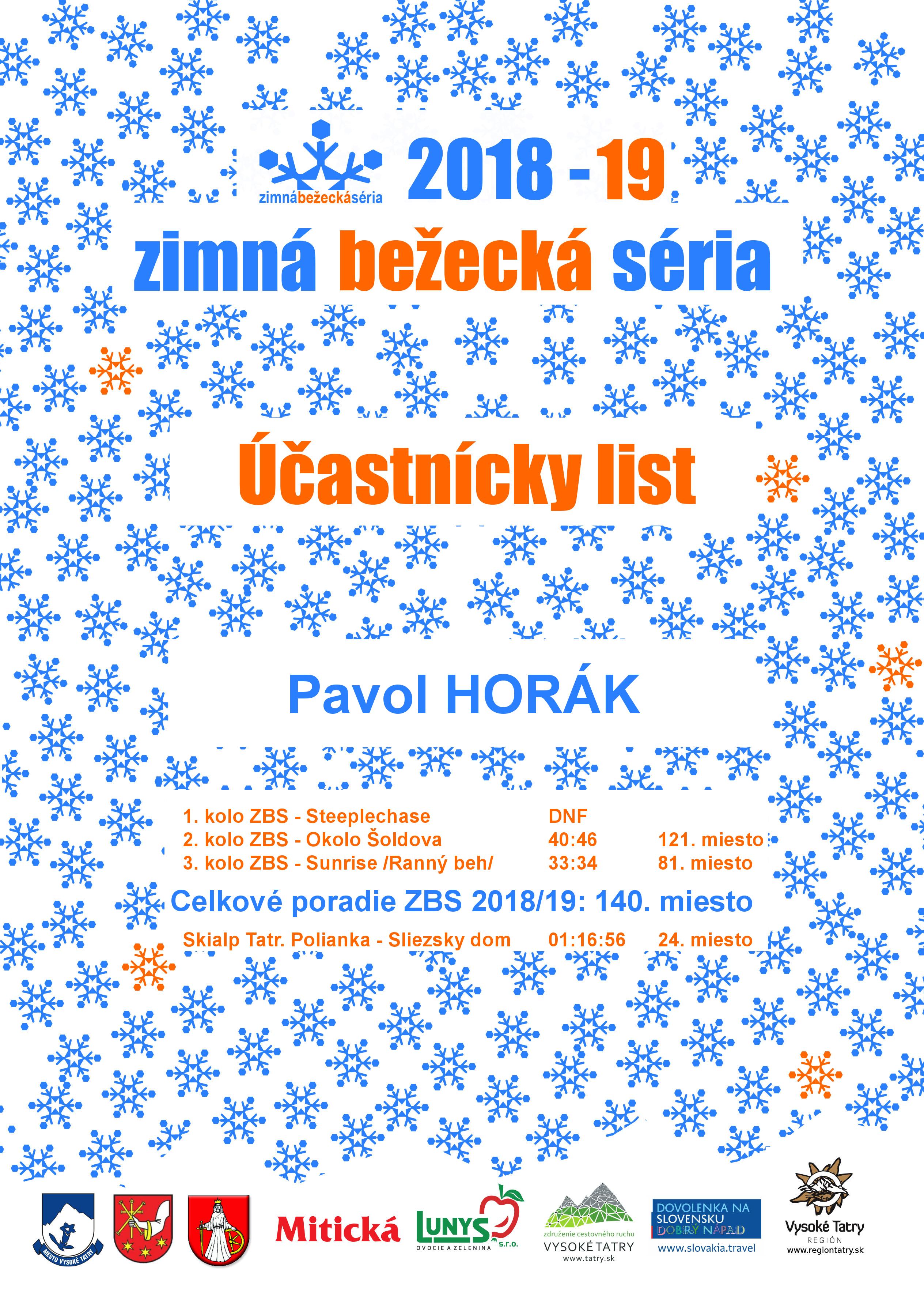Účastnícky list pretekára HORÁK Pavol