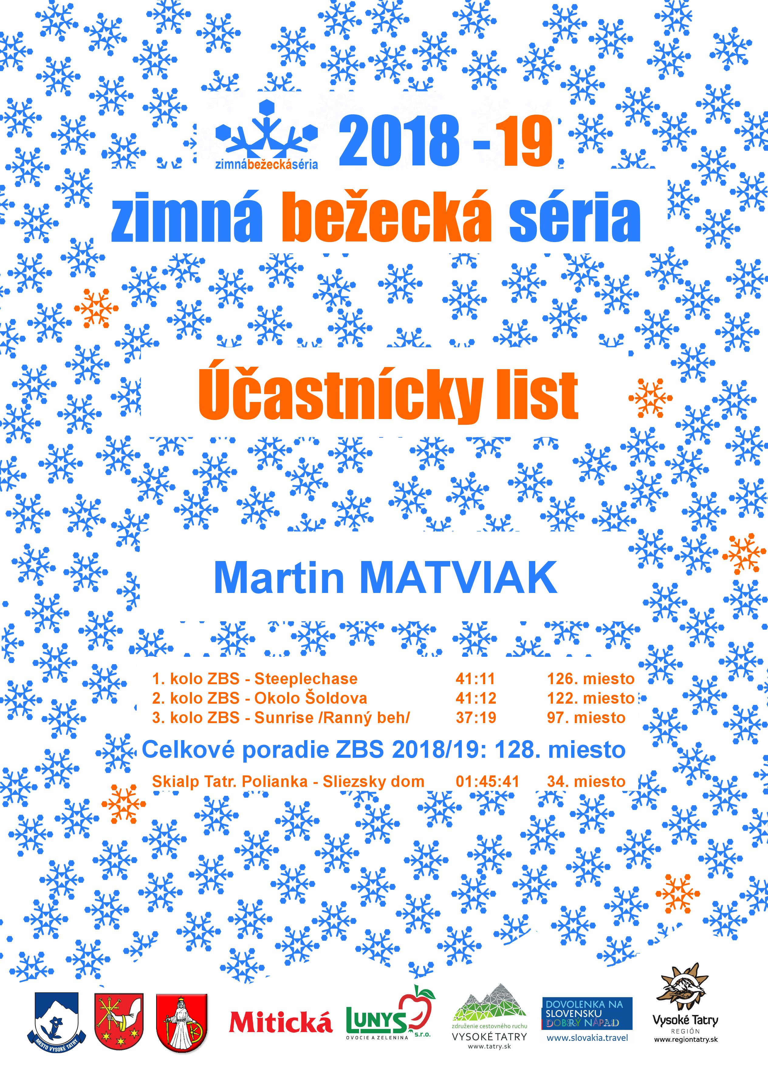 Účastnícky list pretekára MATVIAK Martin