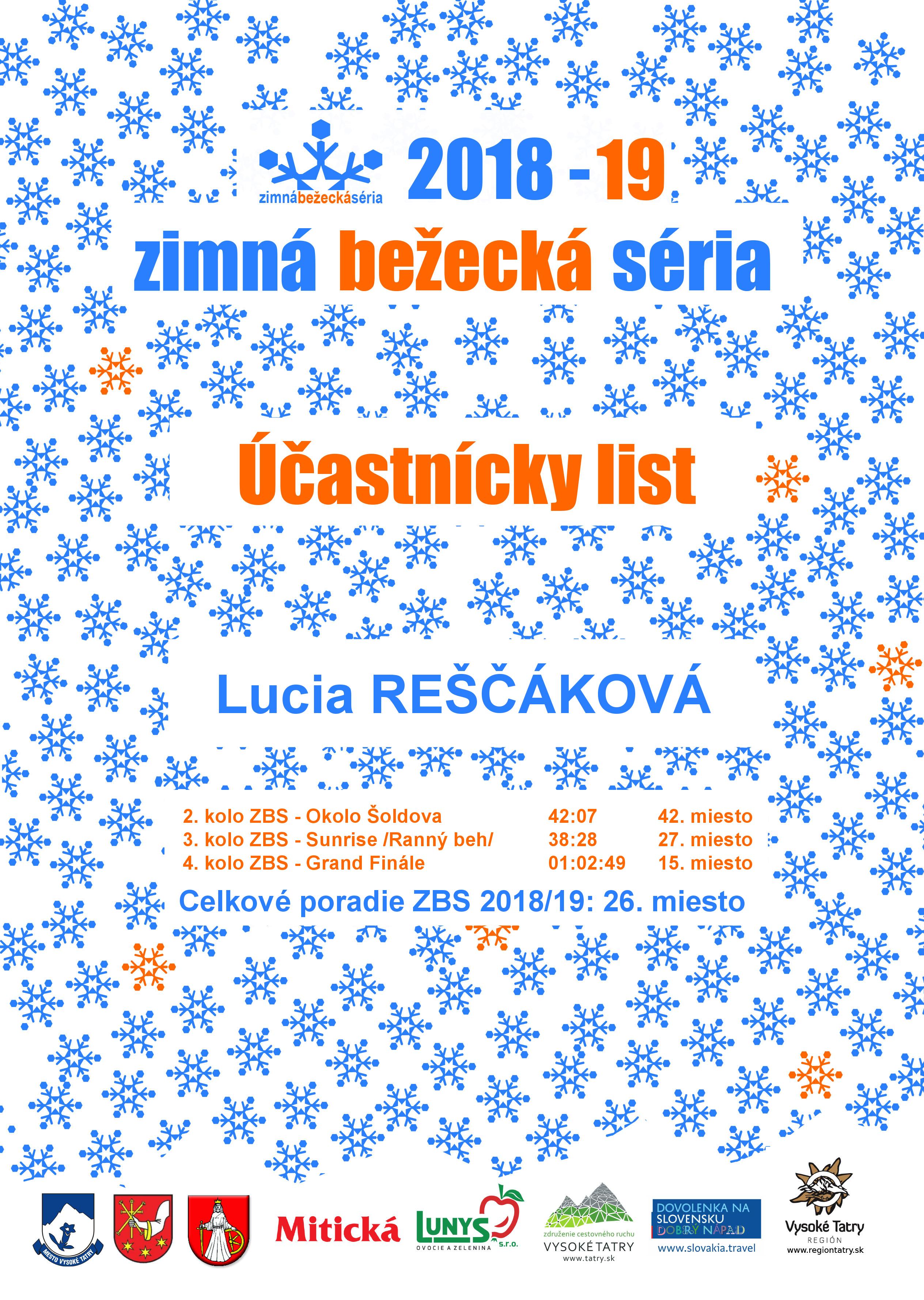 Účastnícky list pretekára REŠČÁKOVÁ Lucia