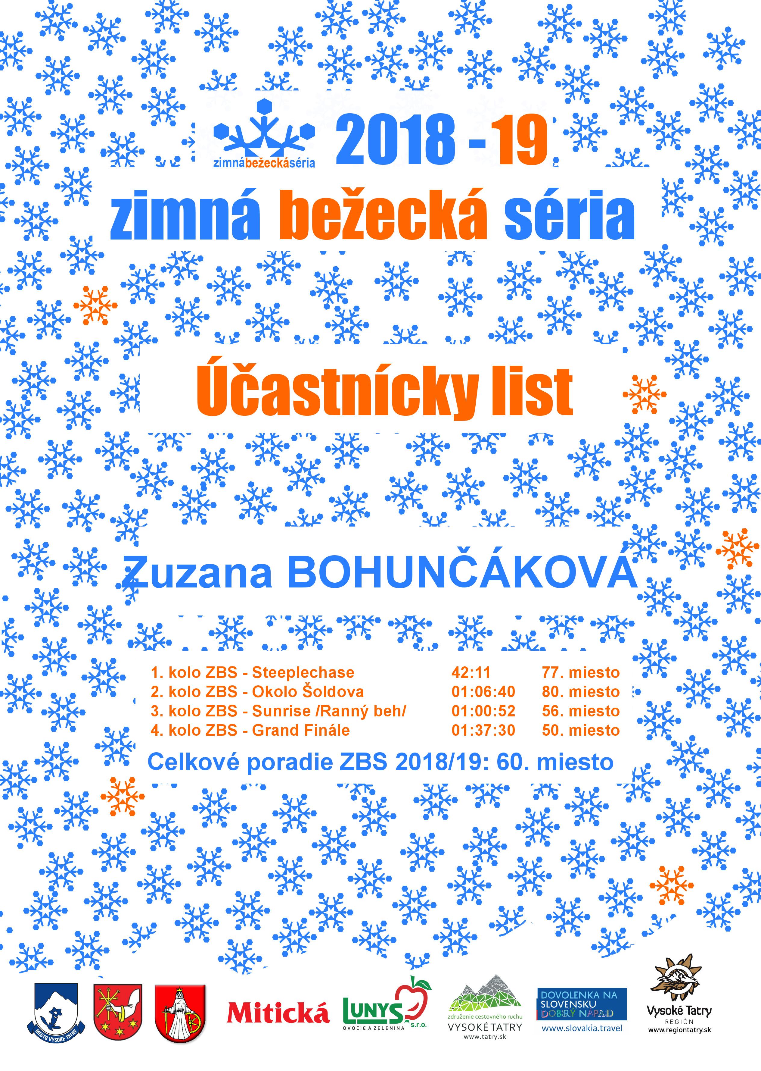 Účastnícky list pretekára BOHUNČÁKOVÁ Zuzana