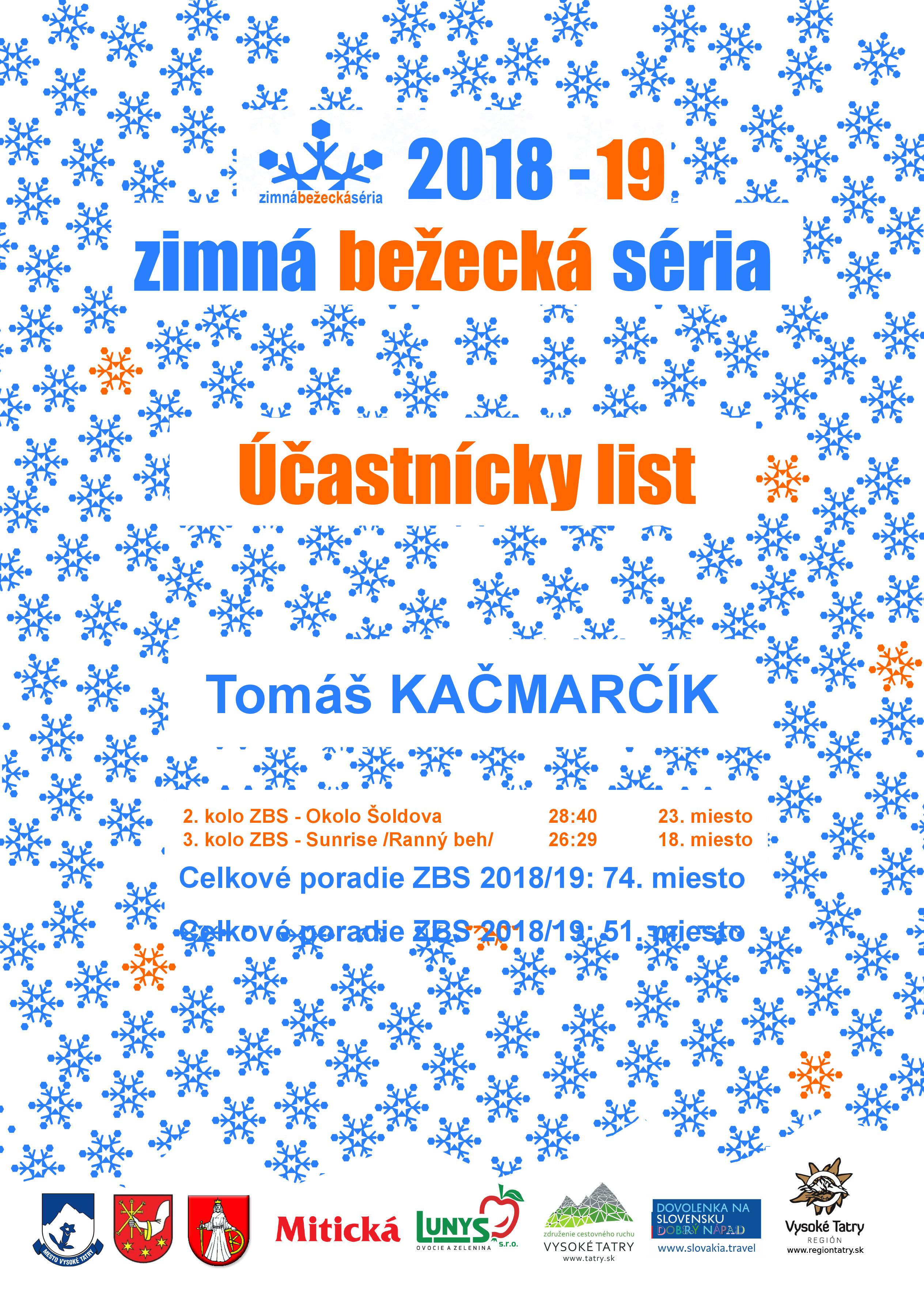 Účastnícky list pretekára KAČMARČÍK Tomáš
