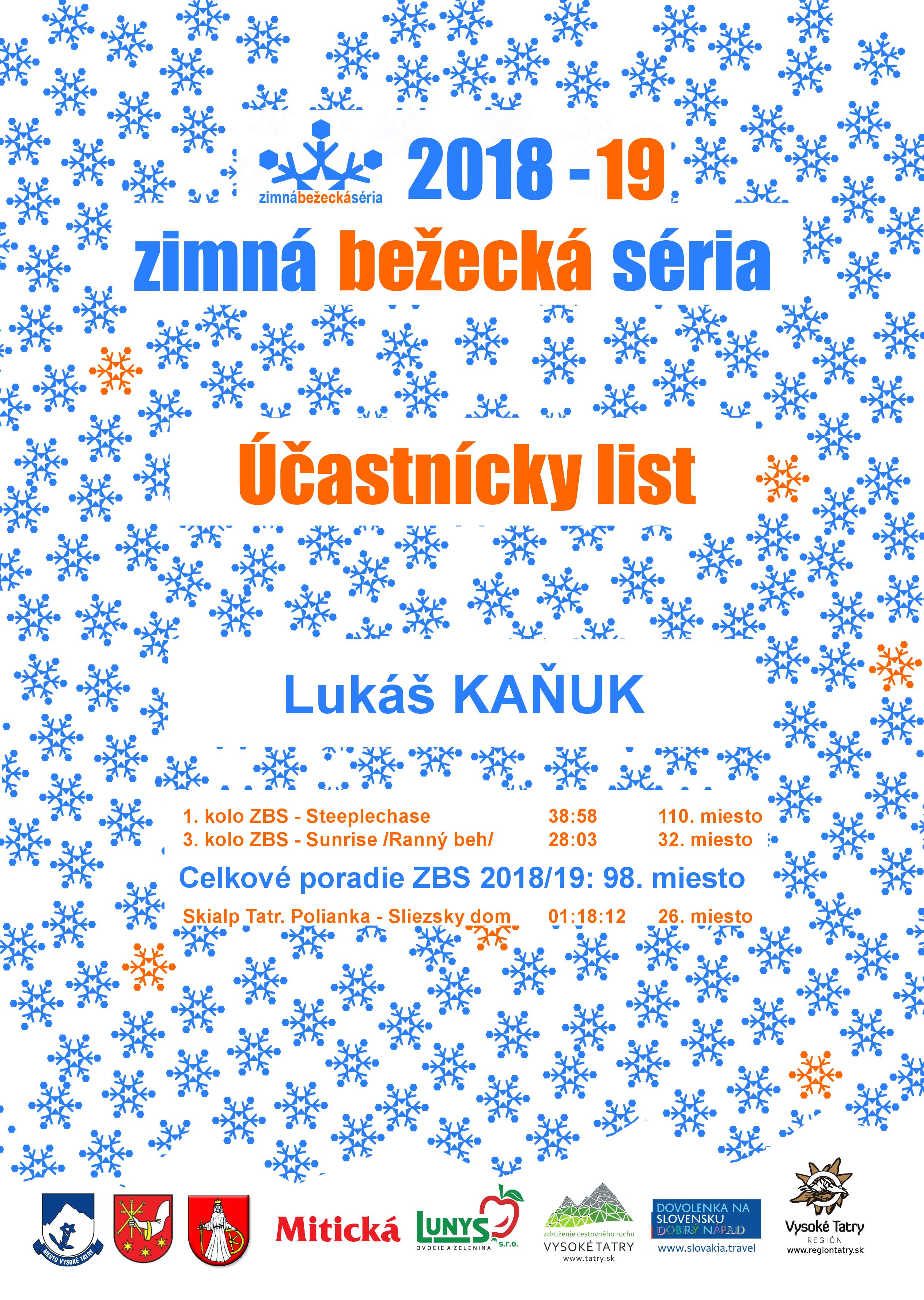 Účastnícky list pretekára KAŇUK Lukáš
