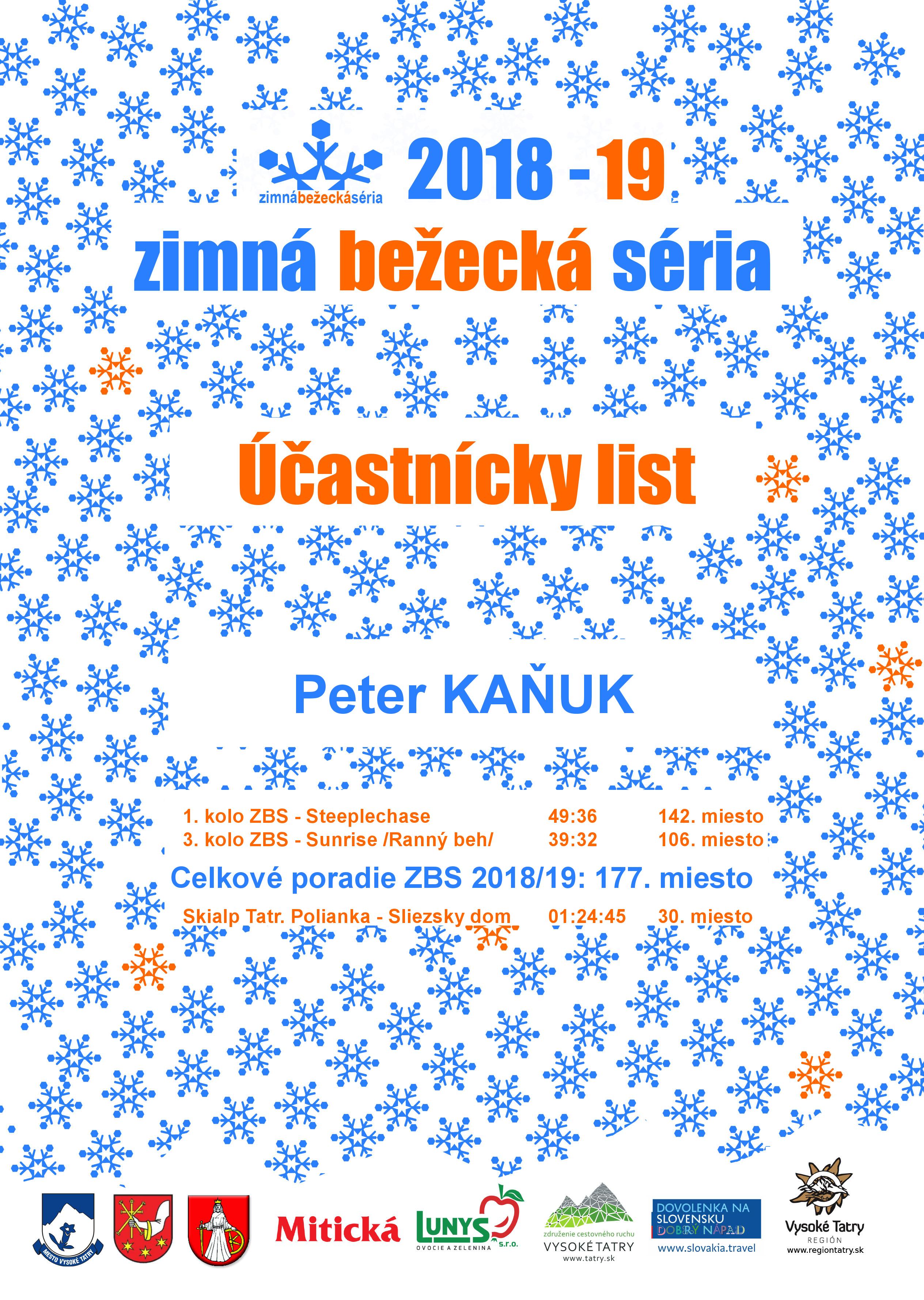 Účastnícky list pretekára KAŇUK Peter