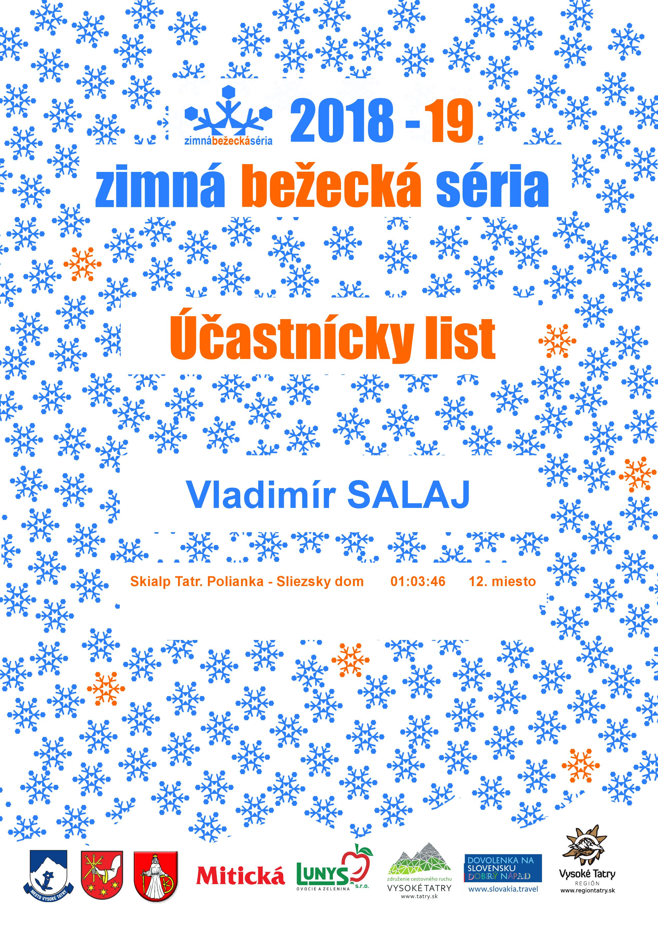 Účastnícky list pretekára SALAJ Vladimír
