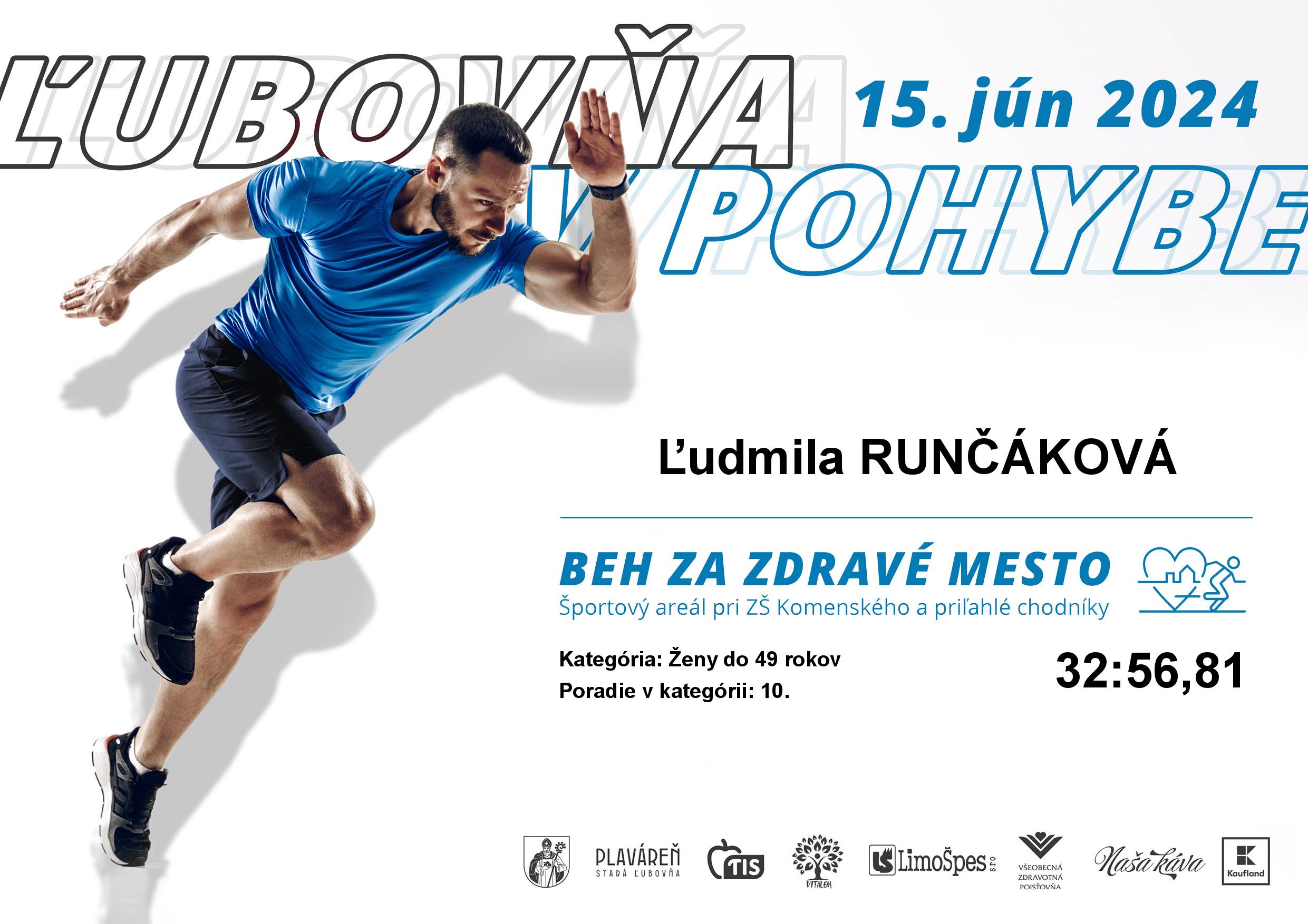 Účastnícky list pretekára RUNČÁKOVÁ Ľudmila