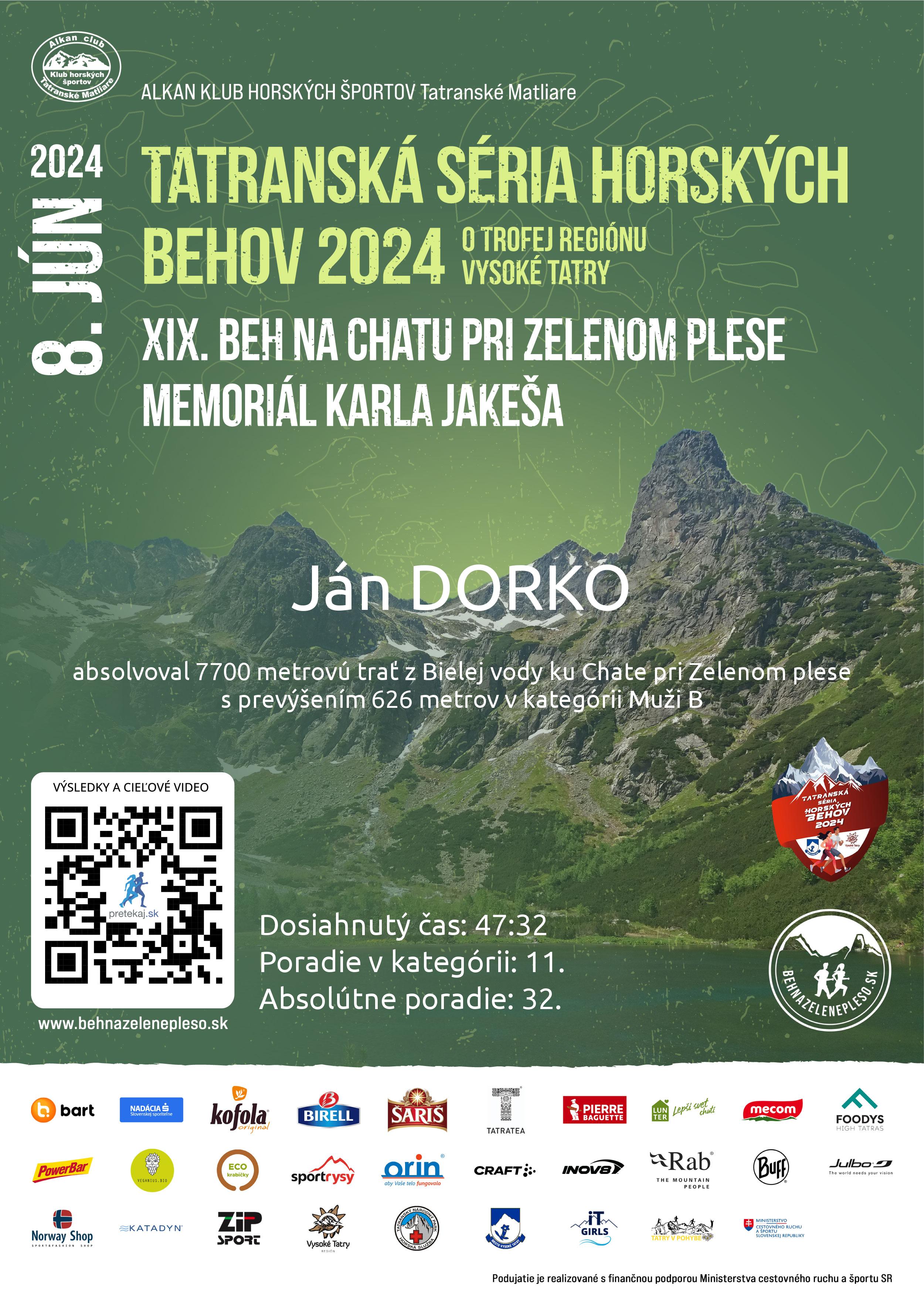 19. ročník atraktívnych pretekov v behu do vrchu, ktorý organizuje Alkan klub Horských športov a Sportrysy Club v spolupráci s Chatou pri Zelenom plese.
