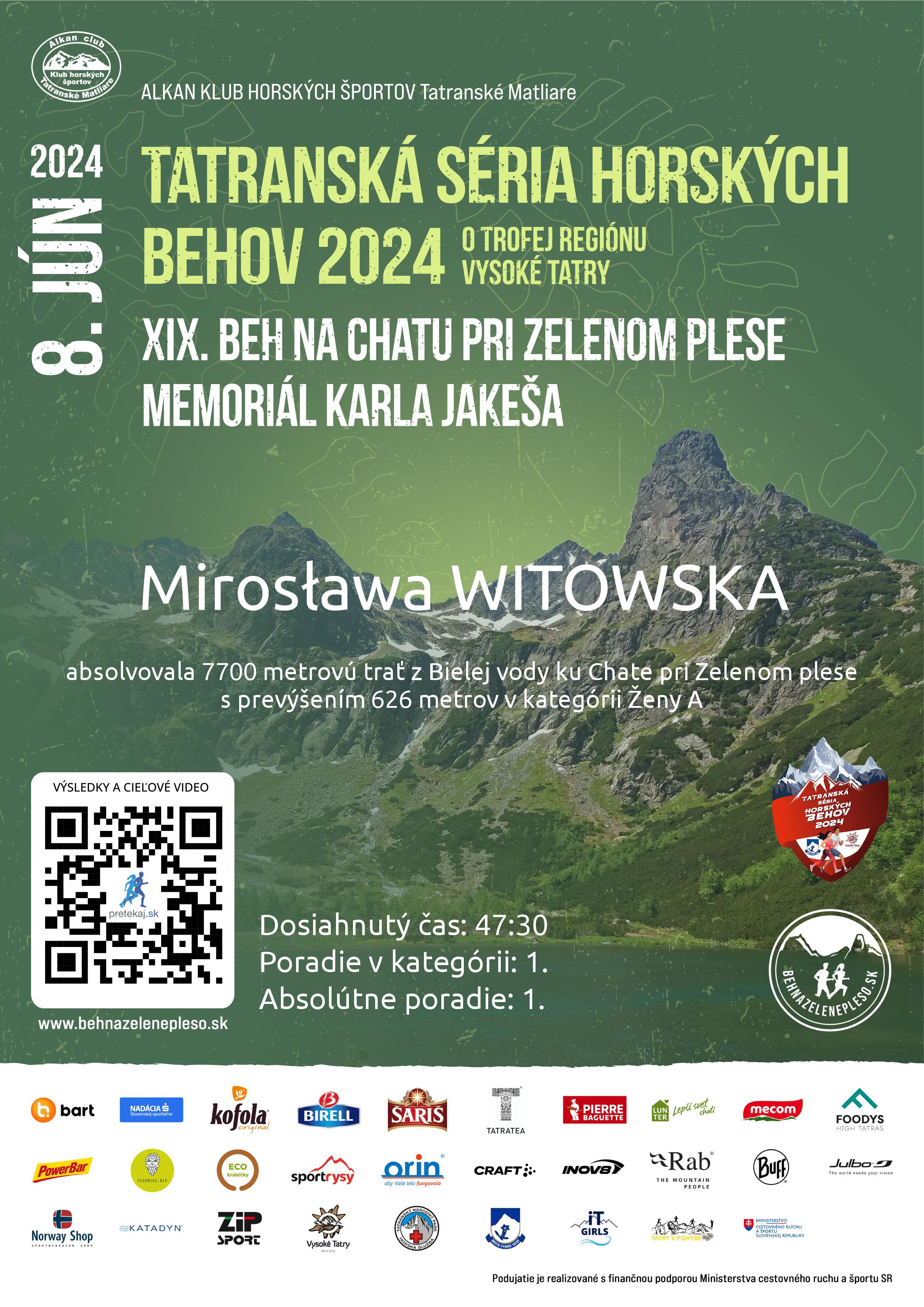 19. ročník atraktívnych pretekov v behu do vrchu, ktorý organizuje Alkan klub Horských športov a Sportrysy Club v spolupráci s Chatou pri Zelenom plese.